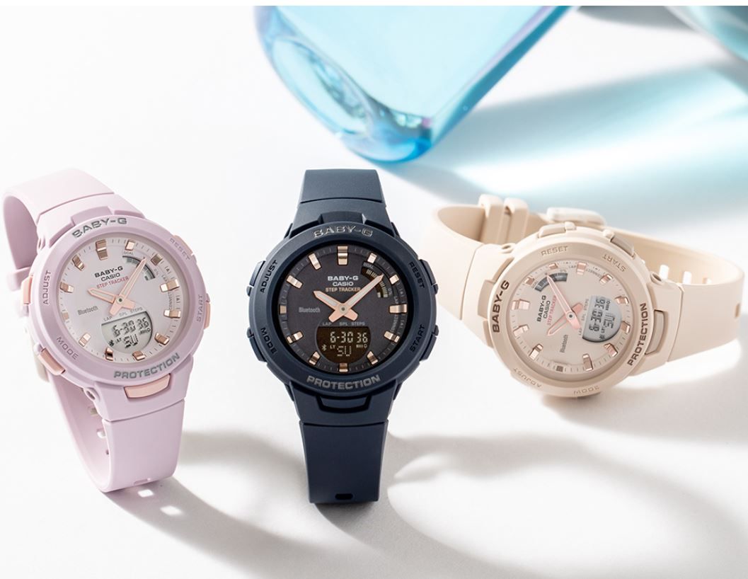 BABY-G в лаконичном корпусе обладает функцией шагомера и способны отслеживать вашу дневную активность, а с помощью технологии Bluetooth® часы способны синхронизироваться с вашим смартфоном и отображать все метрики дневной активности в специальном приложение G-SHOCK Connected App в максимально удобном и наглядном виде.