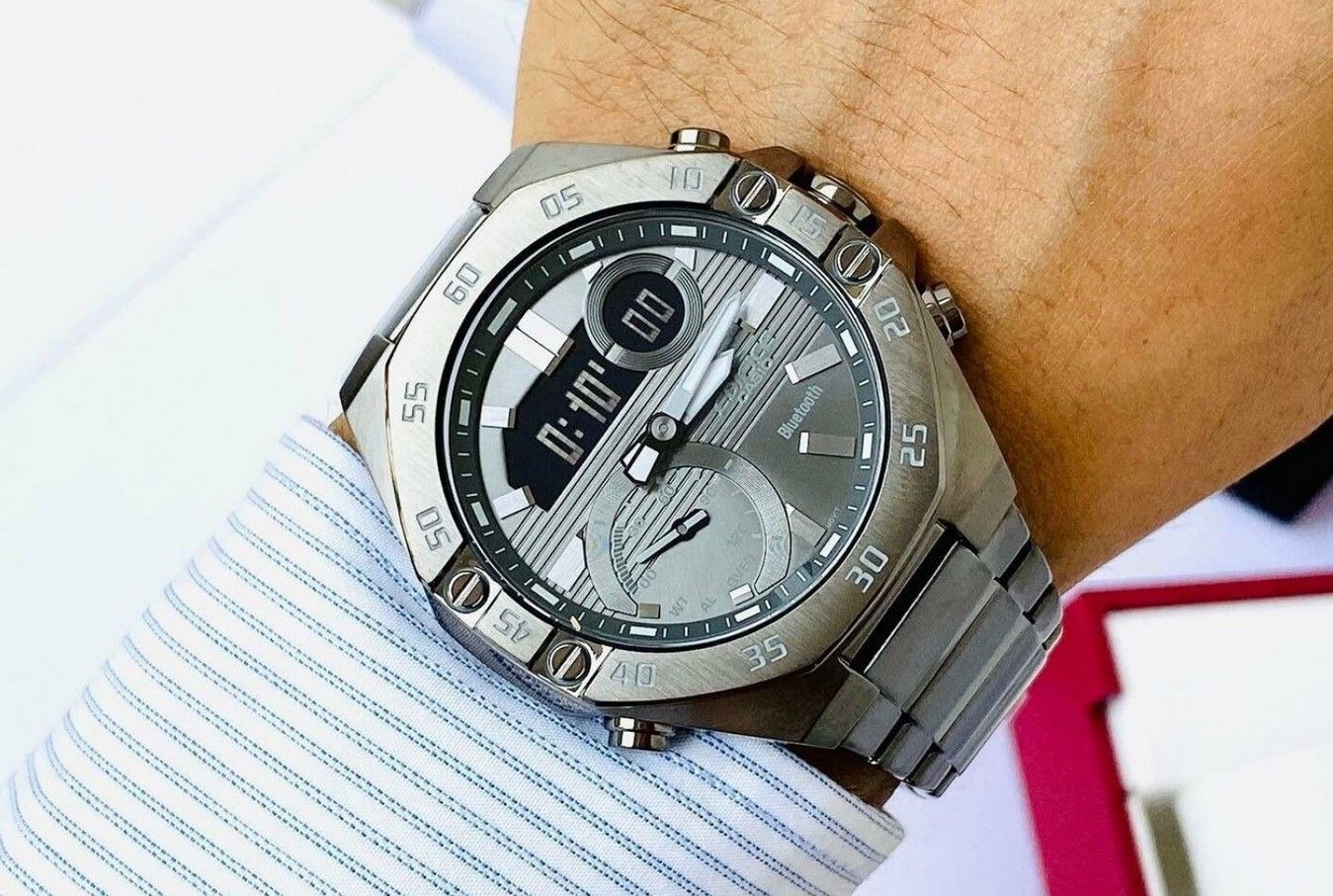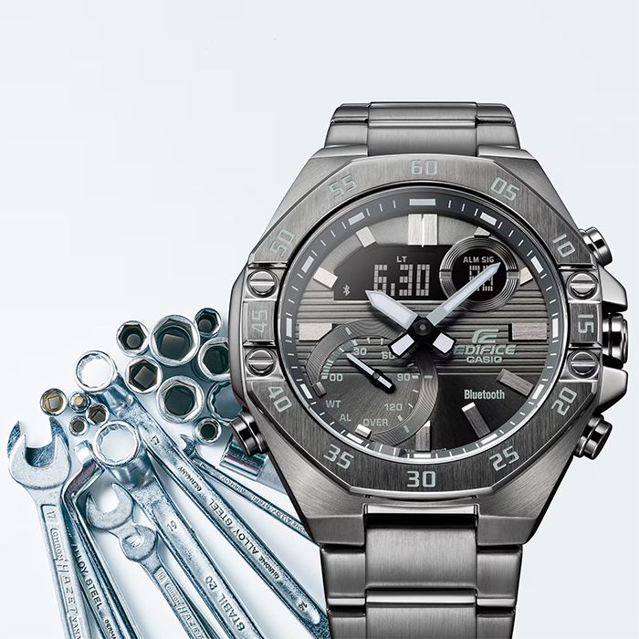 Помимо отличного стильного дизайна со спортивными чертами во внешнем облике, эти часы обладают технологией Bluetooth®, позволяющей синхронизировать часы со смартфоном, высокоточным секундомером с шагом 1/1000 секунды, привычной для часов Edifice водозащитой в 100 метров и двойной светодиодной подсветкой.