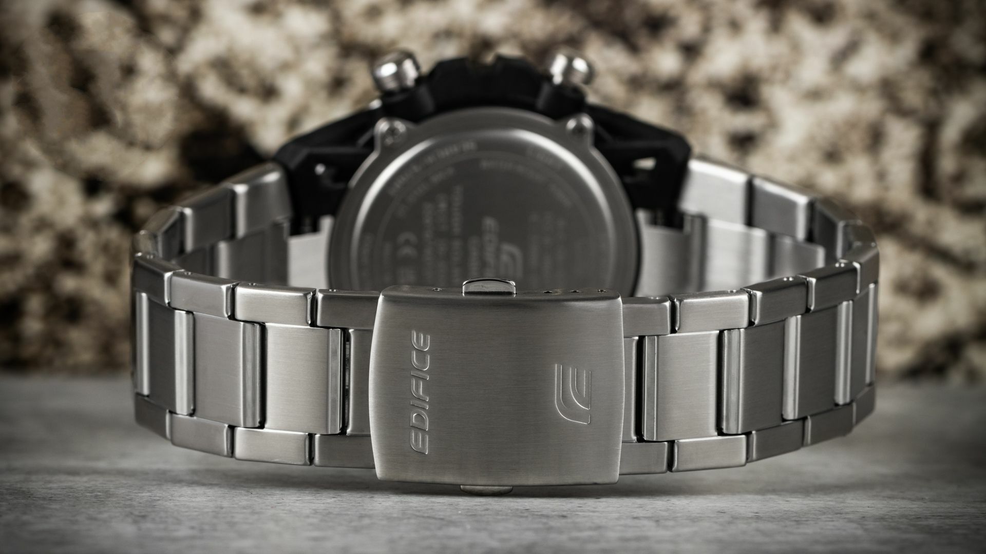 Особенностью модели является ее карбоновый корпус — это первые часы в семействе Edifice в корпусе из карбона, до этого все модели линейки Эдифис имели только стальные корпуса. Необычная харизматичная конструкция корпуса выполнена в стилистике подвесок в формульных гонках, где колеса болида крепятся к шасси на карбоновых лучах.