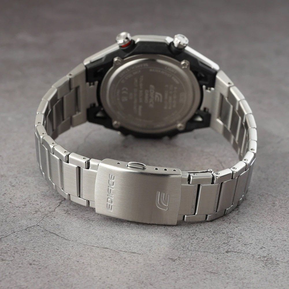 Особенностью модели является прочный и легкий карбоно-стальной корпус — это одни из немногочисленных часов в семействе Edifice в корпусе из карбона, до 2022 года все модели линейки Эдифис имели только стальные корпуса. Необычная узнаваемая конструкция корпуса выполнена в стилистике подвесок в формульных гонках, где колеса болида крепятся к шасси на карбоновых лучах.