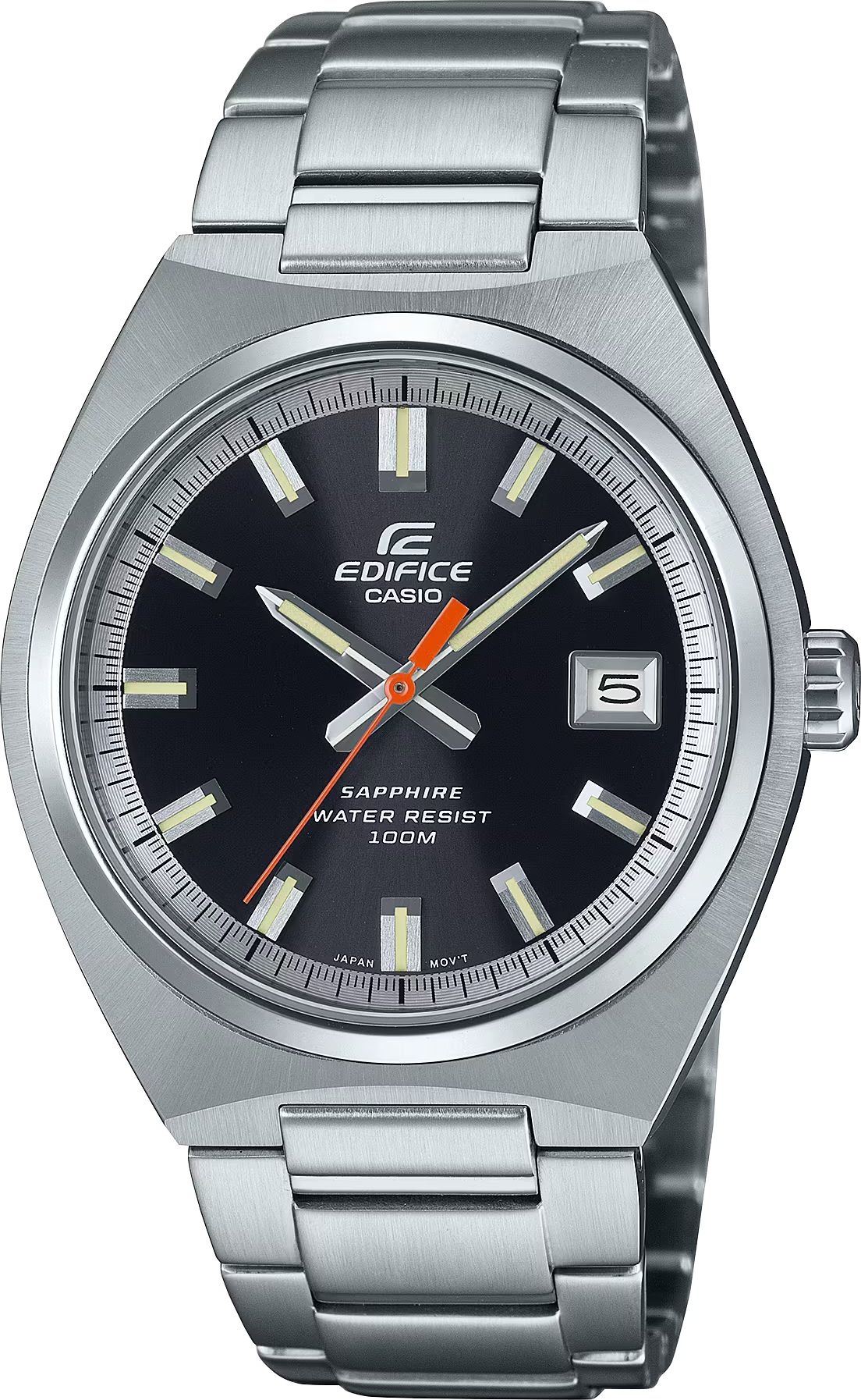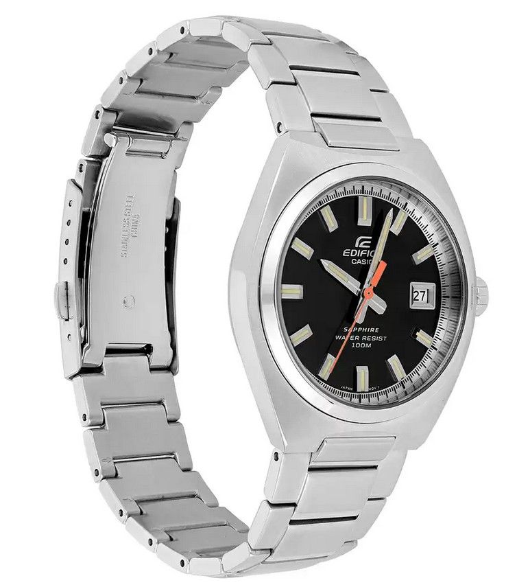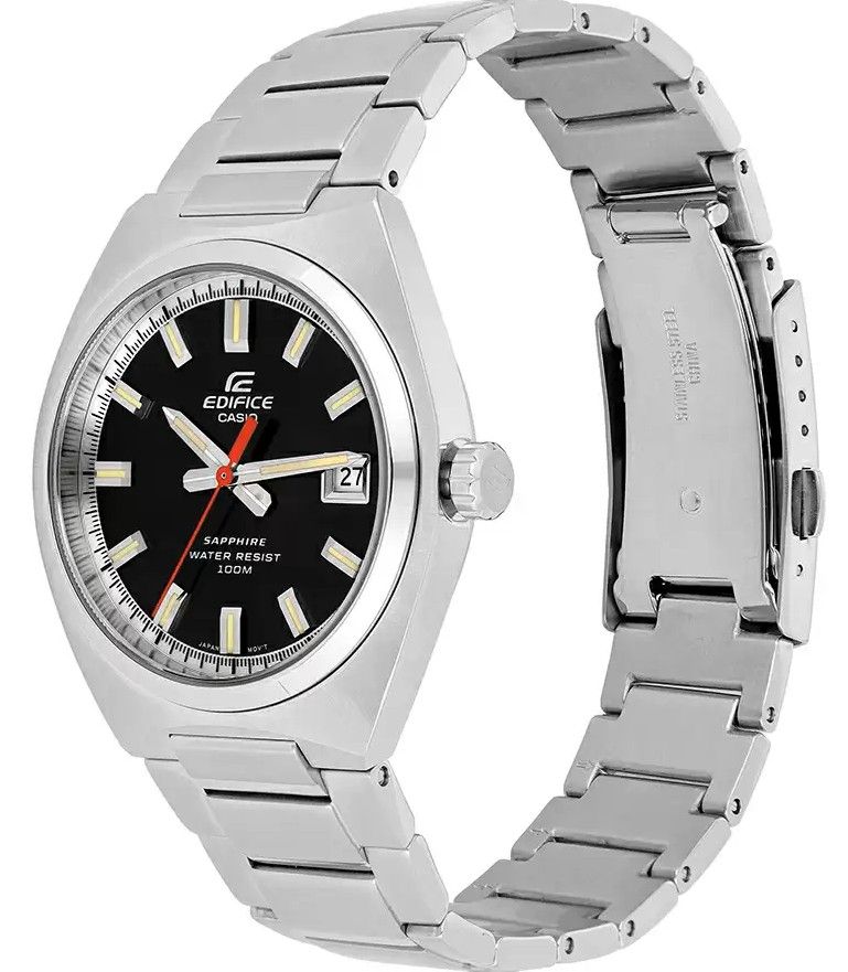 В итоге мы получили сверх-стильный лаконичный трехстрелочник с водозащитой в 10 Бар, сапфиром, необрайтовой подсветкой стрелок, отображением текущей даты и батарейкой на 3 года. Отличный стальной релиз от Casio в новом тренде Edifice к тонким лаконичным моделям со спортивным характером.