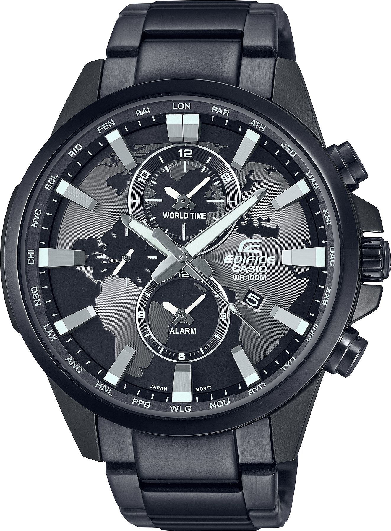 Стильные мужские часы Edifice из серии EFR-303 в стальном корпусе с IP покрытием и черным рельефным циферблатом,