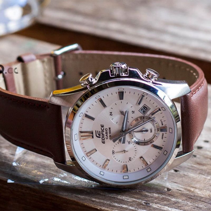 релиз 2024 года в коллекции Edifice — лаконичный и сдержанный хронограф из серии EFR-560 в стальном корпусе на ремешке из натуральной кожи.