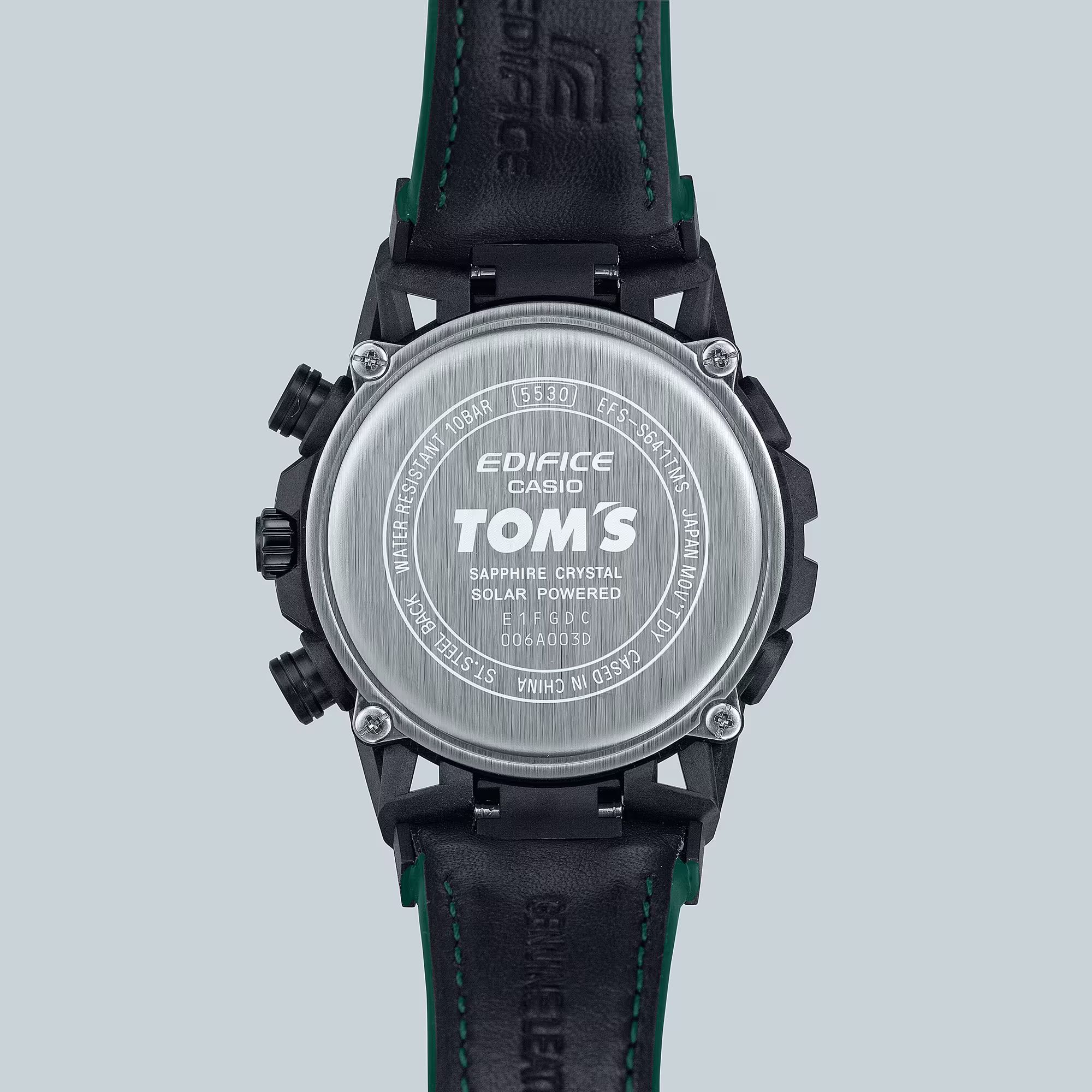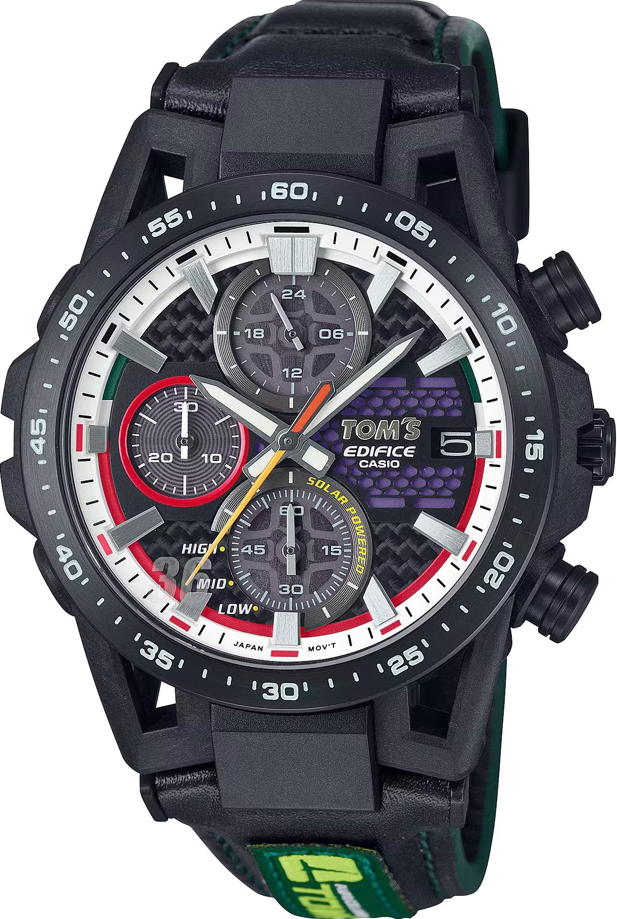 Редкая лимитированная модель 2024 года — коллаборация Edifice и японской гоночной команды TOM'S в честь ее 50-летия.