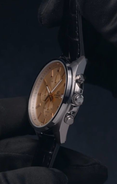 релиз 2025 года в коллекции Edifice — стильный и лаконичный хронограф из серии EFV-610 в стальном корпусе на черном ремешке из натуральной кожи.