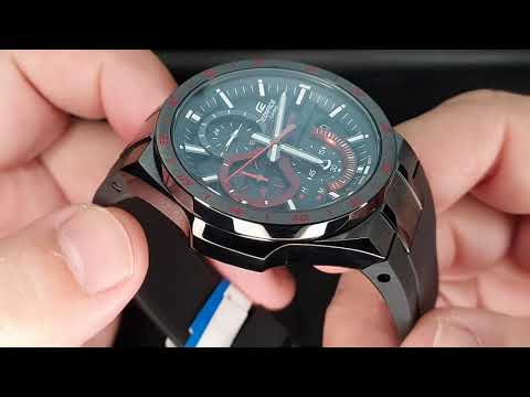 Помимо основных показателей времени, данная модель обладает солнечной батареей и секундомером. Как и все модели Edifice, часы обладают водозащитой в 10 Бар.