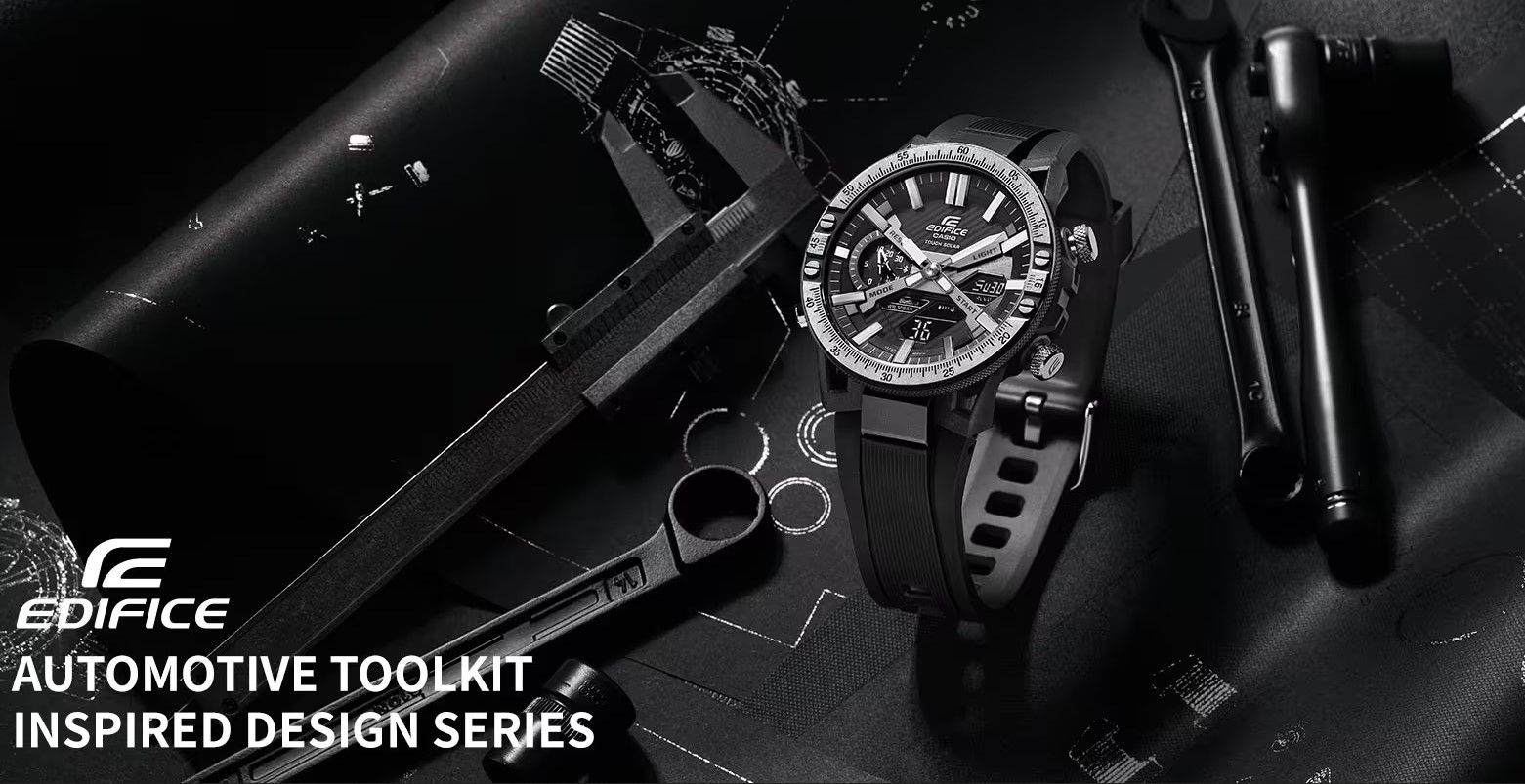 Втречайте релиз середины 2023 года EDIFICE AUTOMOTIVE TOOLKIT INSPIRED DESIGN Настройте свою мощность и точность с помощью смелого и выразительного дизайна, вдохновленного автомобильными инструментами. Специальные высокопроизводительные часы для автоспорта EDIFICE EQS-930TL могут похвастаться солидной изысканностью и тонкой детализацией, свойственной набору инструментов любителя автомобилей. Чтобы подчеркнуть прочность и солидность общего дизайна, металлический безель выполнен в мощном двухцветном сочетании черного и серебра — при этом первоначальное черное ионное покрытие было отполировано, чтобы удалить черный цвет с верхней части безеля, обнажая серебро под ним. Детальная маркировка размеров и накатка подчеркивают, точность и качество профессиональных инструментов и специализированных инструментов, вдохновивших эти часы. Солнечные панели пропускают много света через три встроенных циферблата, чтобы обеспечить питание еще дольше. С ремешком из натуральной кожи для придания дополнительного стиля.