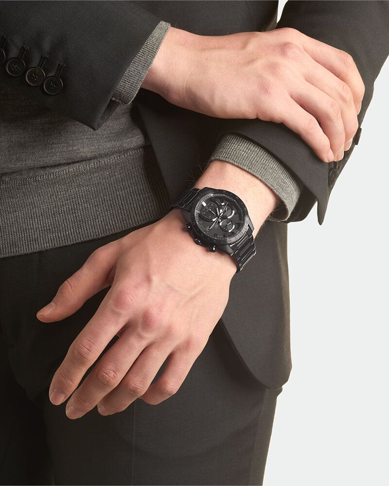 Резьбовое соединение на основании корпуса оптимально защищает внутренний механизм часов и одновременно обеспечивает легкий доступ, например, при замене аккумулятора.Браслет из нержавеющей стали с IP покрытием