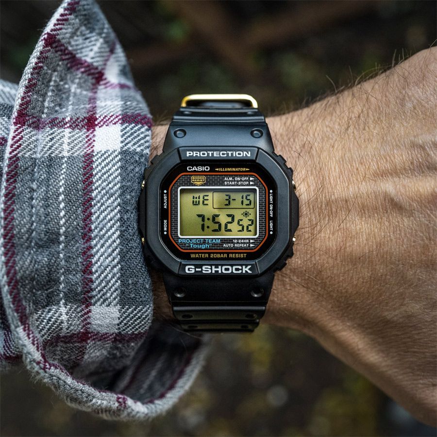 Особенная юбилейная упаковка, золотой цвет кнопок, циферблата, застежки браслета и задняя крышка с юбилейной гравировкой, — все это переводит данную модель в разряд "MUST HAVE" для настоящих фанов G-SHOCK !
