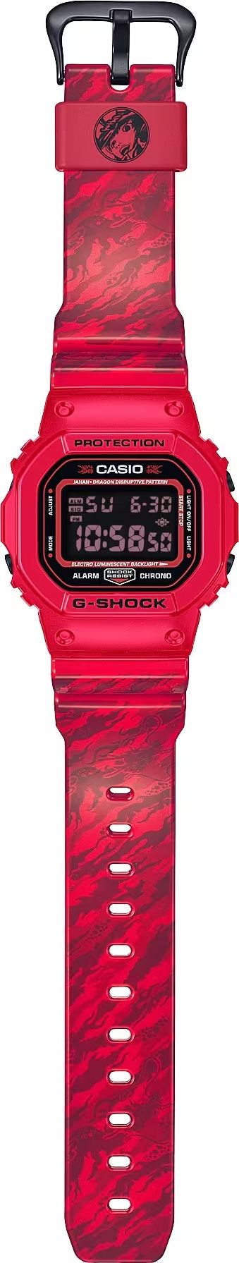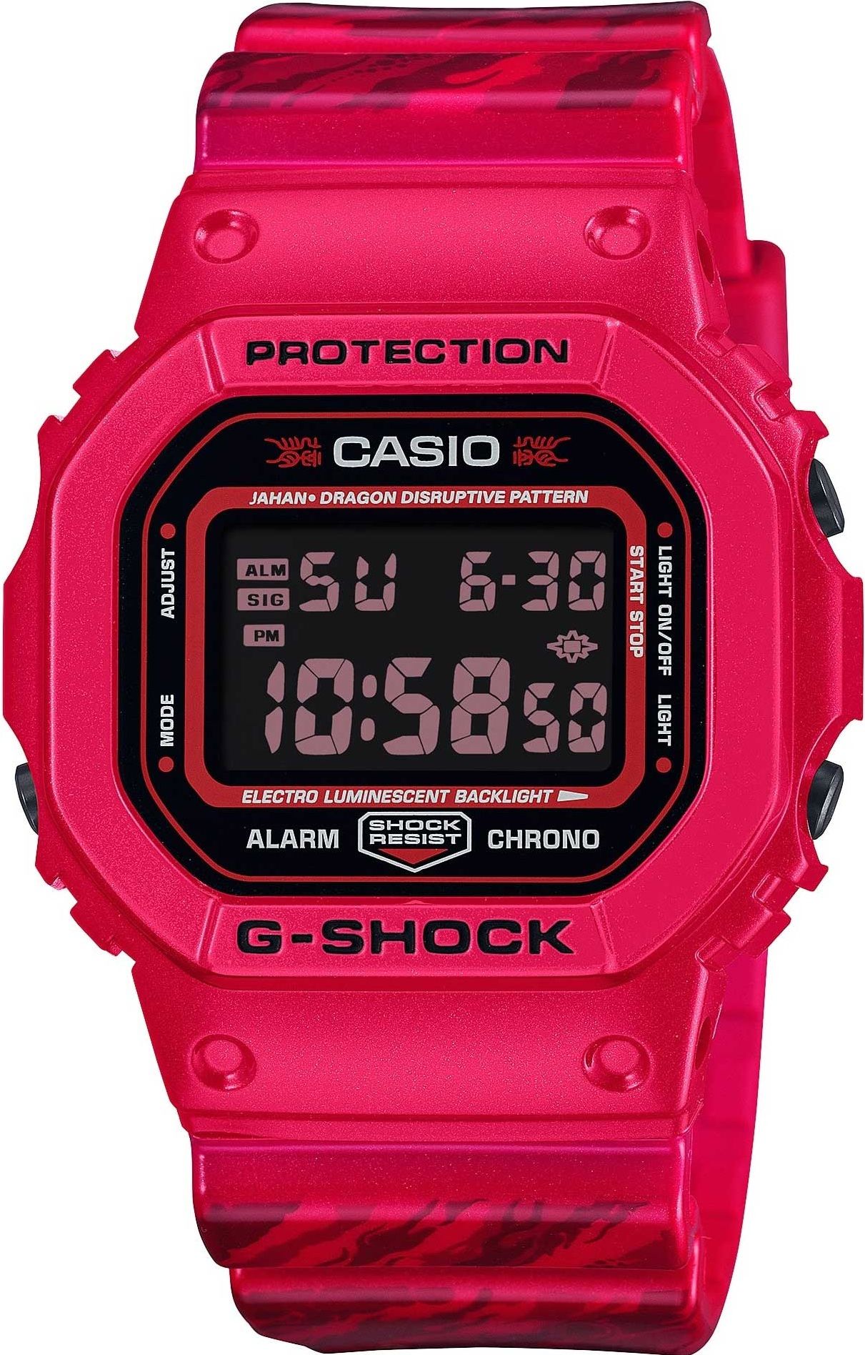 Это последняя модель сотрудничества с сингапурским современным художником Джаханом Ло. Casio объединилась с Джаханом Ло для выпуска лимитированной серии G-SHOCK DW-5600JAH24-4, Эта коллаборация отличается смелой красной цветовой гаммой, вдохновленной недавними работами Джахана Ло. Часы могут похвастаться смелой красной основой и надписью «Dragon Disruptive Pattern» со специальными рисунками на циферблате часов. Отличительные дизайнерские акценты украшают ремешок часов, вдохновленные элементами личных историй Джахана. Эти дизайнерские акценты черпают вдохновение в драконе, его годе рождения и уникальном переплетающемся узоре, который отражает его мысли о путешествии во времени, переходя от футуристического видения к связи с прошлым. Заключительные штрихи включают выгравированный на задней крышке логотип Джахана и характерные узоры на специальной упаковке, которые создают единую тему во всем дизайне.