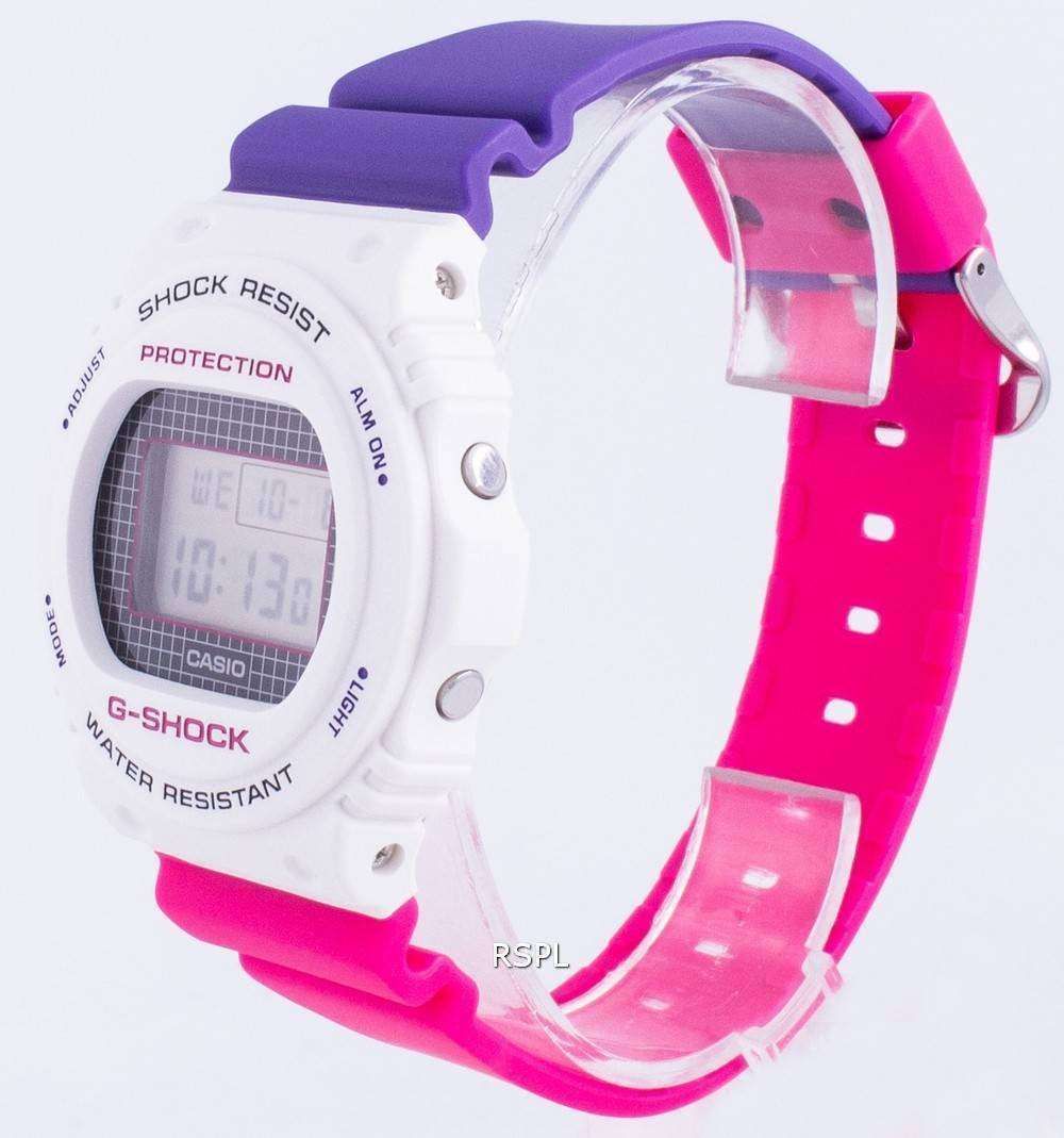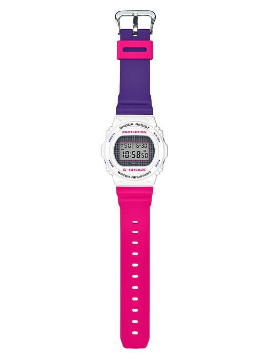 Перед вами супер редкая лимитка G-Shock 1987 года рождения! Да-да, вы не ослышались, это второе рождение серии DW-5700, которая впервые появилась на свет более 30 лет назад. Этот харизматичный релиз 2019 года выполнен в стильном белом корпусе с ярким ремешком. Одна половина ремешка получила розовый окрас, а вторая фиолетовый. И несмотря на перерождение модели и ее "исторический" вид корпуса, здесь вы найдете новые, более качественные материалы, улучшенный циферблат и его подсветку.