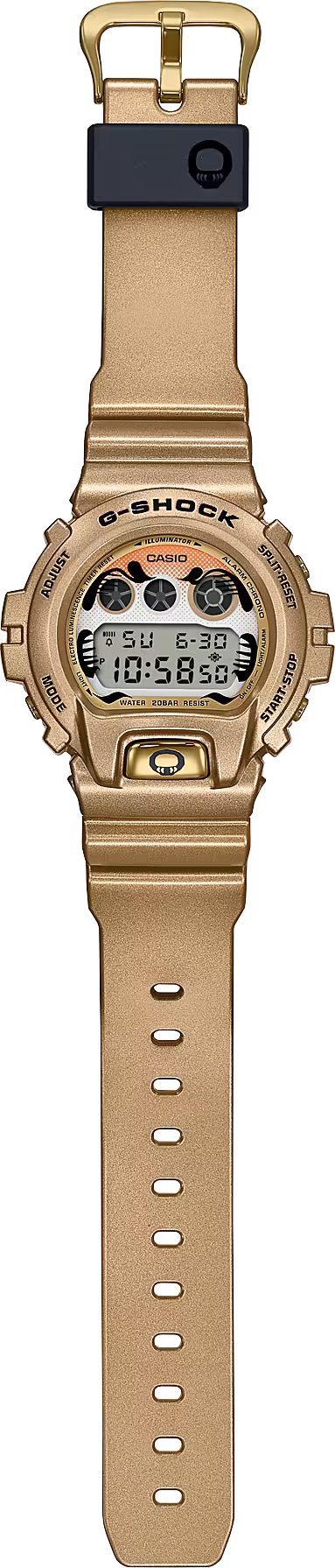 Семь раз упади, восемь раз поднимись — перед вами редкий лимитированный релиз из серии G-SHOCK DW-6900, посвященный упорству, удачи и стойкости. Модель выполнена в золотом оттенке, символизируя собой процветание, а циферблат часов стилизован под маску Дарумы — традиционного японского персонажа, символа упорства и удачи.