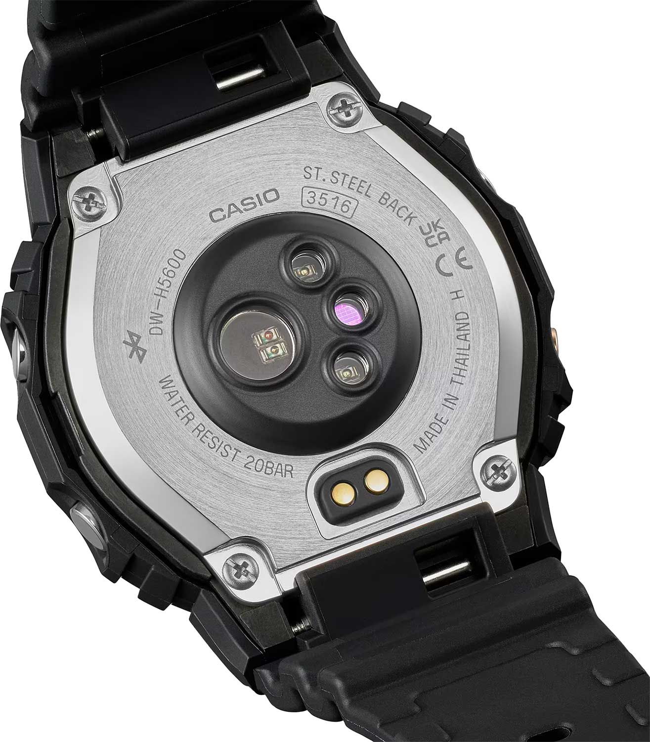 Перед вами большое обновление 2023 года олдскульного сегмента G-SHOCK в корпусе DW-H5600. Корпус модели не претерпел больших изменений, это по прежнему самый узнаваемый силуэт наручных часов в мире, а черный стальной безель добавил часам харизматичности и стиля.Но все же данный релиз не про внешний вид. На борту у новинки на полимерном ремешке: обновленный контрастный MIP LCD дисплей, шагомер, пульсометр, возможность измерять уровень кислорода в крови, встроенный акселерометр, возможность соединения с вашим смартфоном через Bluetooth, солнечная батарея для поддержания базовых часовых функций от неиссякаемого природного источника энергии.