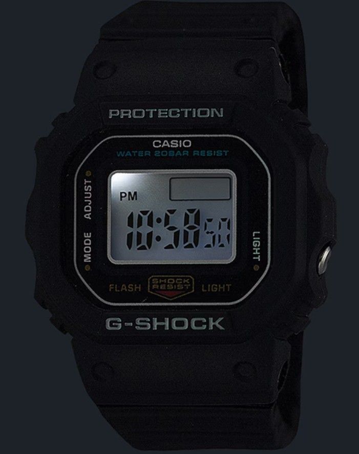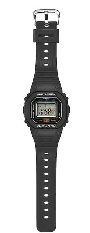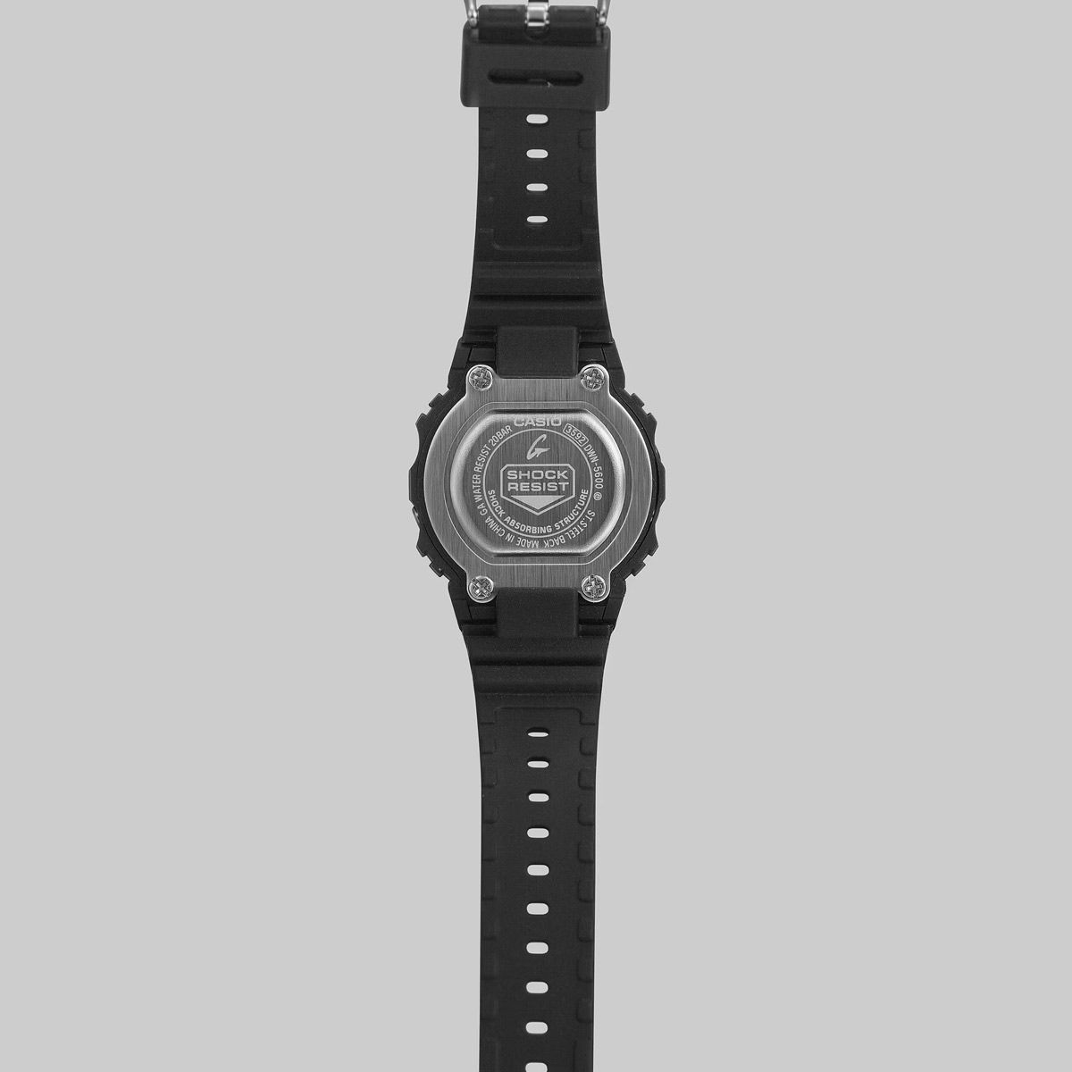 Кольцо-часы в полимерном корпусе DWN-5600 из серии G-SHOCK NANO является уменьшенной почти в 10 раз копией легендарных джишоков DW-5600 весом всего в 6 грамм и показывает точное время с быстрым переключением во второй часовой пояс, имеет подсветку, секундомер, водозащиту в 20 Бар и минеральное стекло.