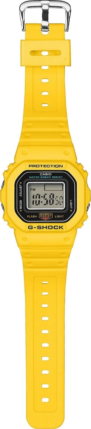 Кольцо-часы в полимерном корпусе DWN-5600 из серии G-SHOCK NANO является уменьшенной почти в 10 раз копией легендарных джишоков DW-5600 весом всего в 6 грамм и показывает точное время с быстрым переключением во второй часовой пояс, имеет подсветку, секундомер, водозащиту в 20 Бар и минеральное стекло.