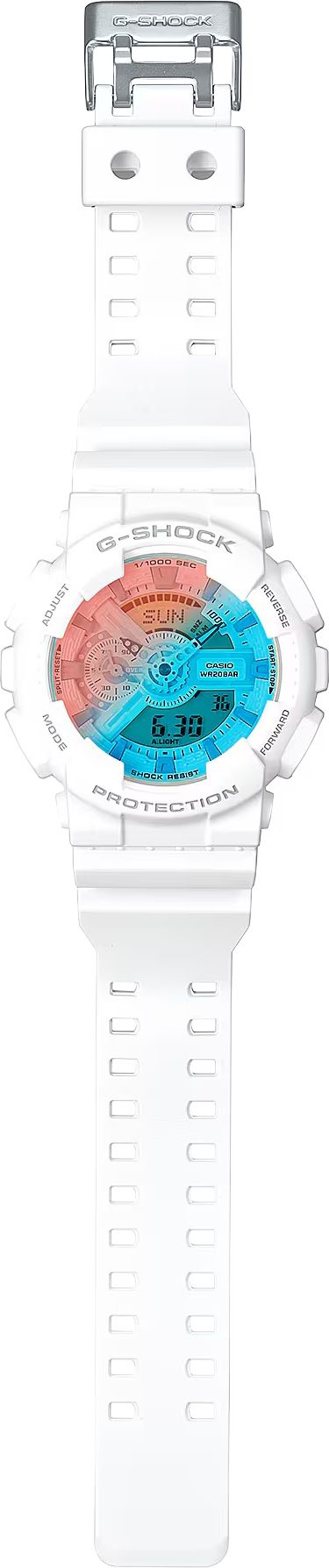 Этим эффектом дизайнеры Casio делают отсылку к летнему утру на пляже, к летнему небу на восходе, которое часто меняет свой