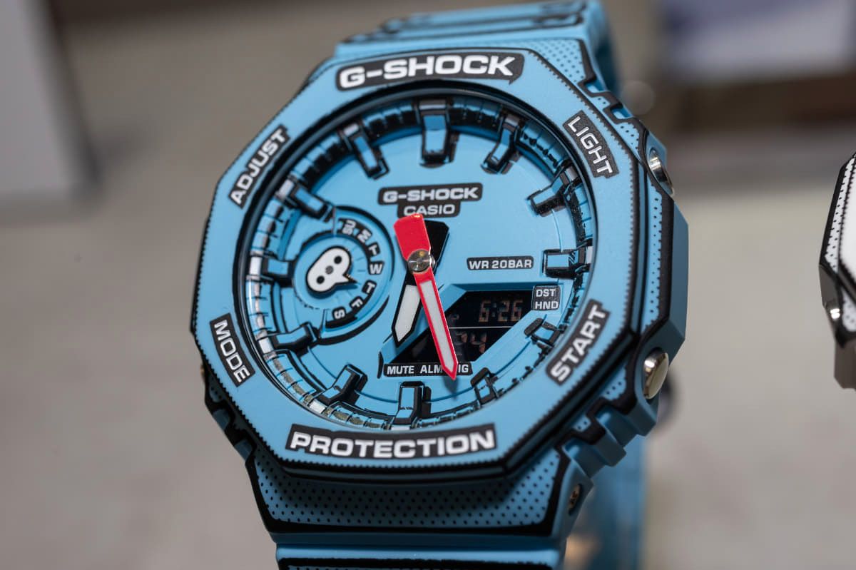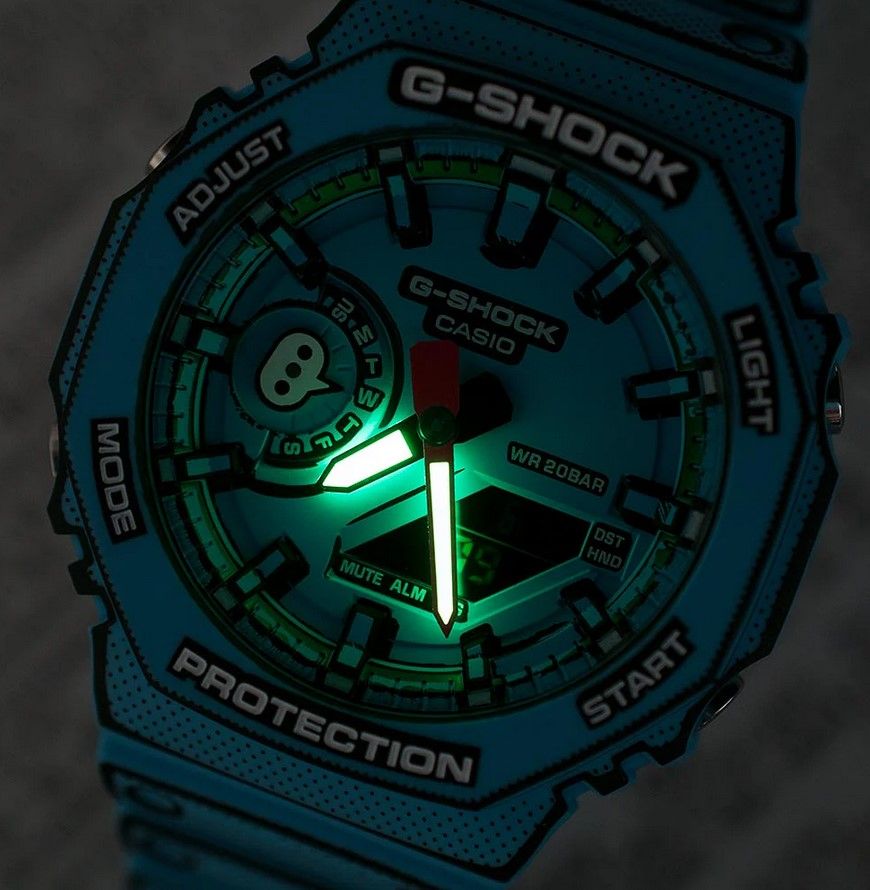 Вы когда-нибудь задумывались, как бы могли выглядеть рисованные вещи из комиксов в нашем реальном мире? Благодаря дизайнерам Casio мы можем это не только увидеть, но и примерить! Перед вами супер лимитрованная модель G-Shock 2024 года в ярком голубом "бумажном" корпусе GA-2100 в форме октагона. Часы выполнены в харизматичном дизайне, который повторяет рисованную стилистику комиксов, благодаря чему, модель выглядит вырезанной из бумаги, хотя это по-прежнему те самые неубиваемые джишоки.