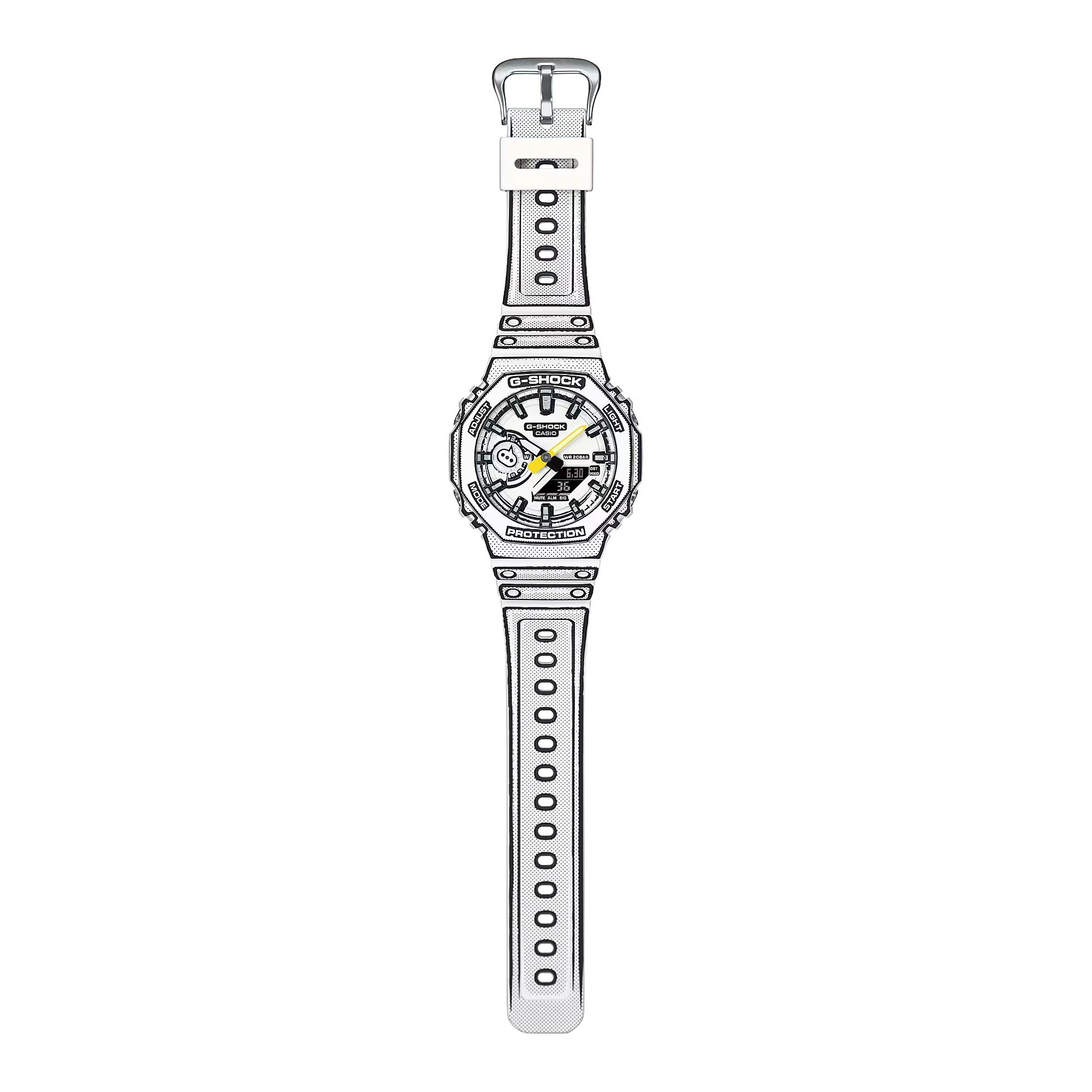 Вы когда-нибудь задумывались, как бы могли выглядеть рисованные вещи из комиксов в нашем реальном мире? Благодаря дизайнерам Casio мы можем это не только увидеть, но и примерить! Перед вами супер лимитрованная модель G-Shock 2024 года в белом "бумажном" корпусе GA-2100 в форме октагона. Часы выполнены в харизматичном дизайне, который повторяет рисованную стилистику комиксов, благодаря чему, модель выглядит вырезанной из бумаги, хотя это по-прежнему те самые неубиваемые джишоки.