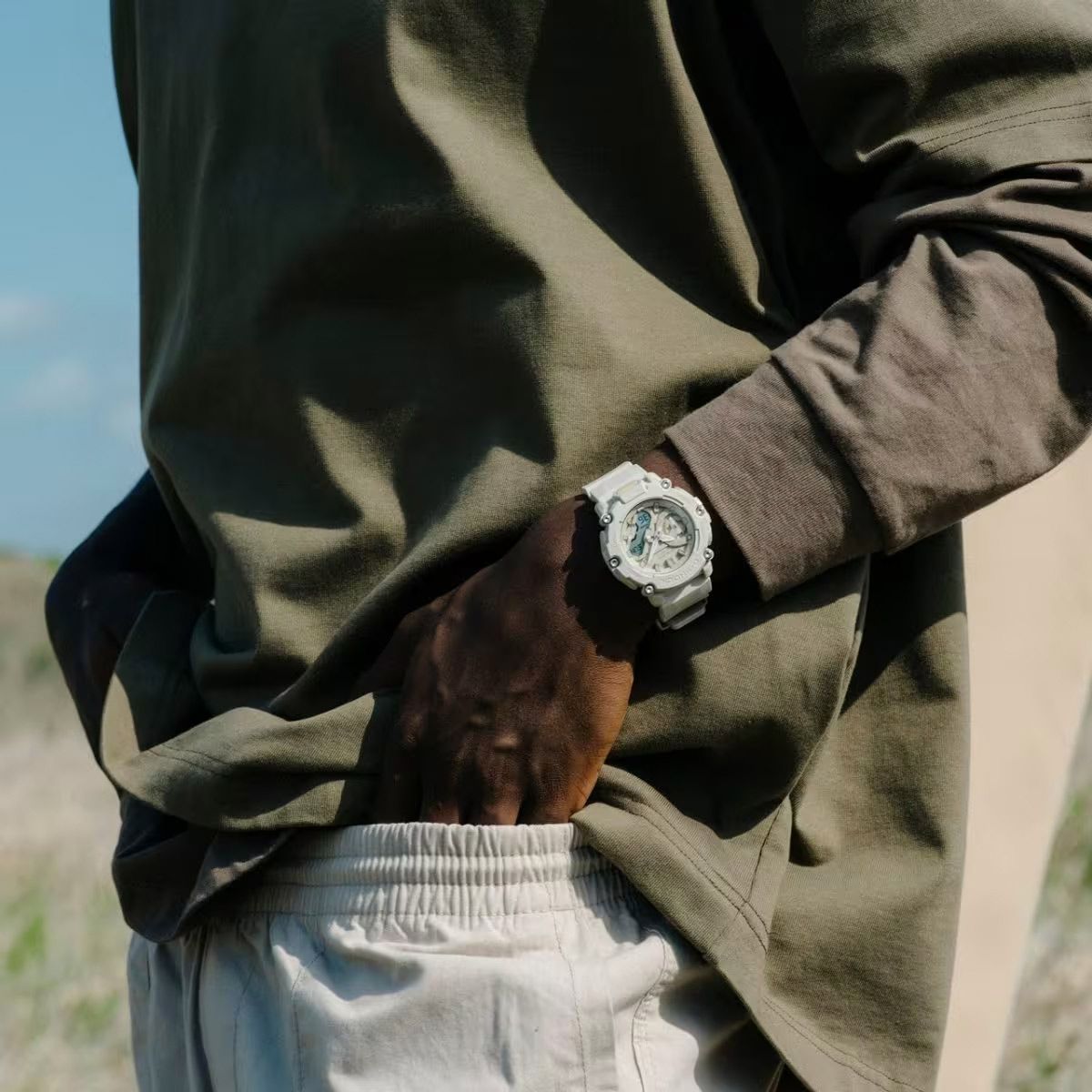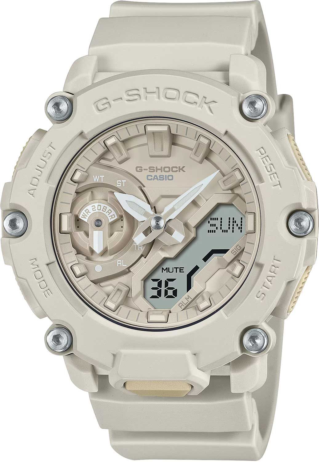 Перед вами лимитированный релиз конца 2023 года в свежем корпусе GA-2200. В часах используется технология Carbon Core Guard: модуль часов защищает легкий и сверх-прочный полимерный корпус с углеродным армированием, а циферблат покрыт прочным закаленным минеральным стеклом.