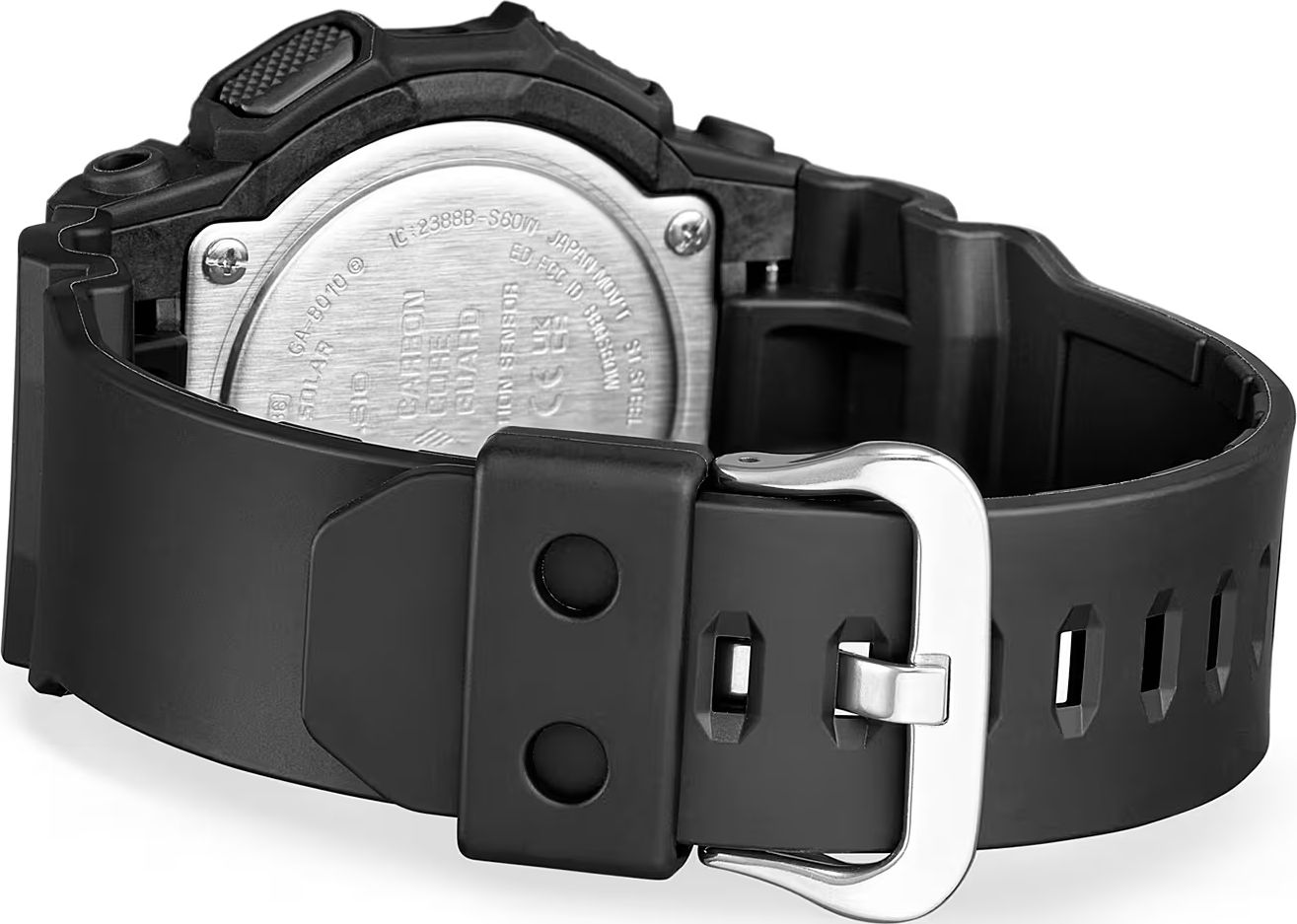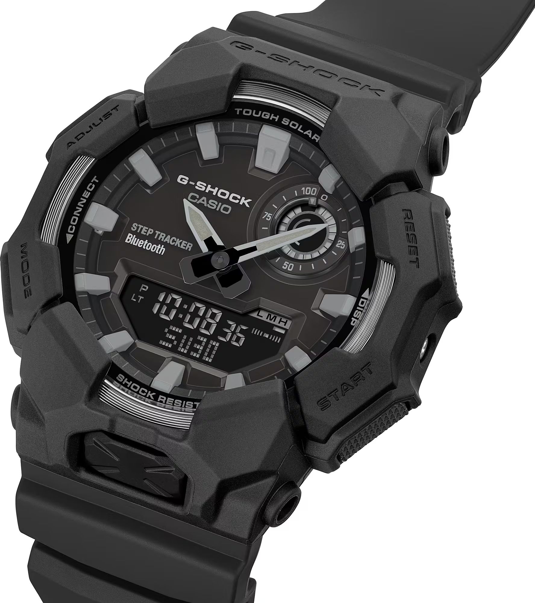 Модель второй половины 2025 года из серии G-SHOCK GA-B010 в брутальном черном корпусе с эргономичным аналого-цифровым циферблатом, защищенным прочным минеральным стеклом. Часы серии GA-B010 получили харизматичный агрессивный внешний вид и технологию Carbon Core Guard: модуль часов защищает 2 слоя корпуса, внешний полимерный и внутренний легкий и сверхпрочный с углеродным армированием.