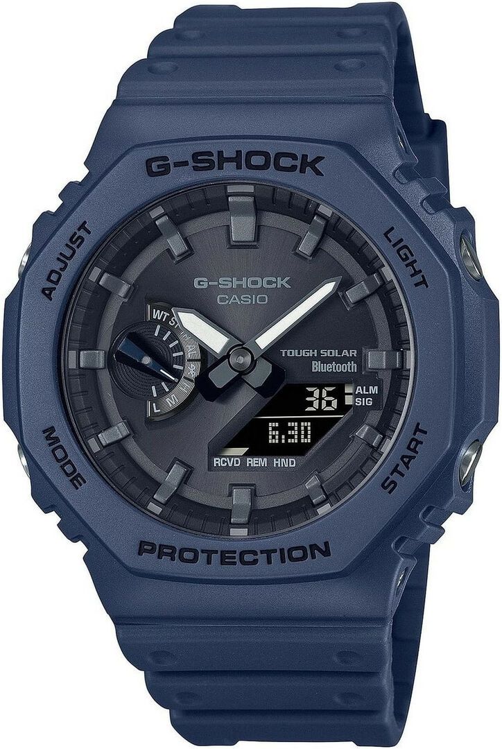 Перед вами долгожданное обновление мая 2022 года в одном из самых популярных корпусов G-Shock последних лет. Стильная модель в октагоновом корпусе в синей расцветке из серии GA-B2100 сохранила внешний облик своих предшественников по серии GA-2100, но получила более технологичный модуль с блютус синхронизацией со смартфоном и солнечной батареей на борту.