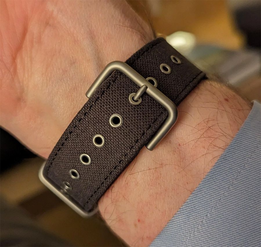 Стильный и прочный ремешок из ткани делает часы удобными при носке. Обхват от 145 до 215мм