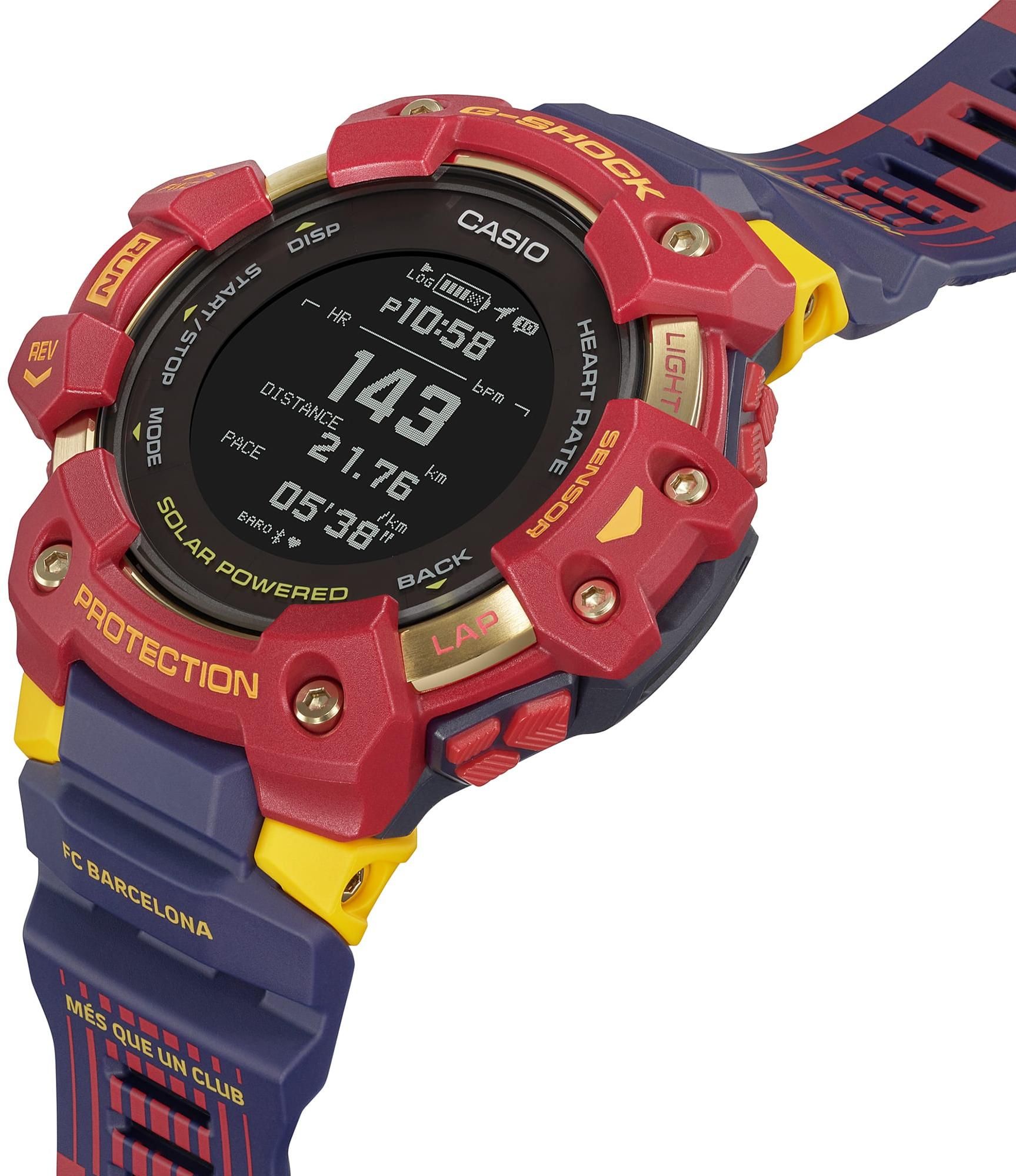 Перед вами первые часы Casio G-Shock с пятью датчиками из серии GBD-H1000. Часы вышли в 2022 году в рамках лимитированной коллаборации G-Shock и документального фильма Matchday: Inside FC Barcelona, рассказывающего о внутренней жизни легендарного каталонского клуба. Помимо стильного внешнего вида, выполненного в цветах Барсы, на борту модели присутствует: термометр, барометр, высотомер, компас, пульсометр и шагомер!