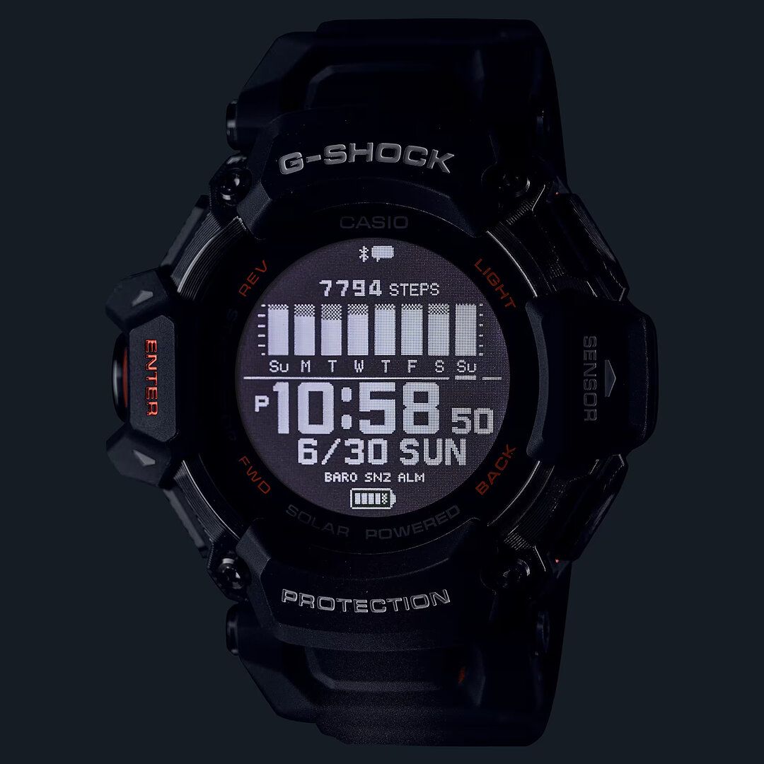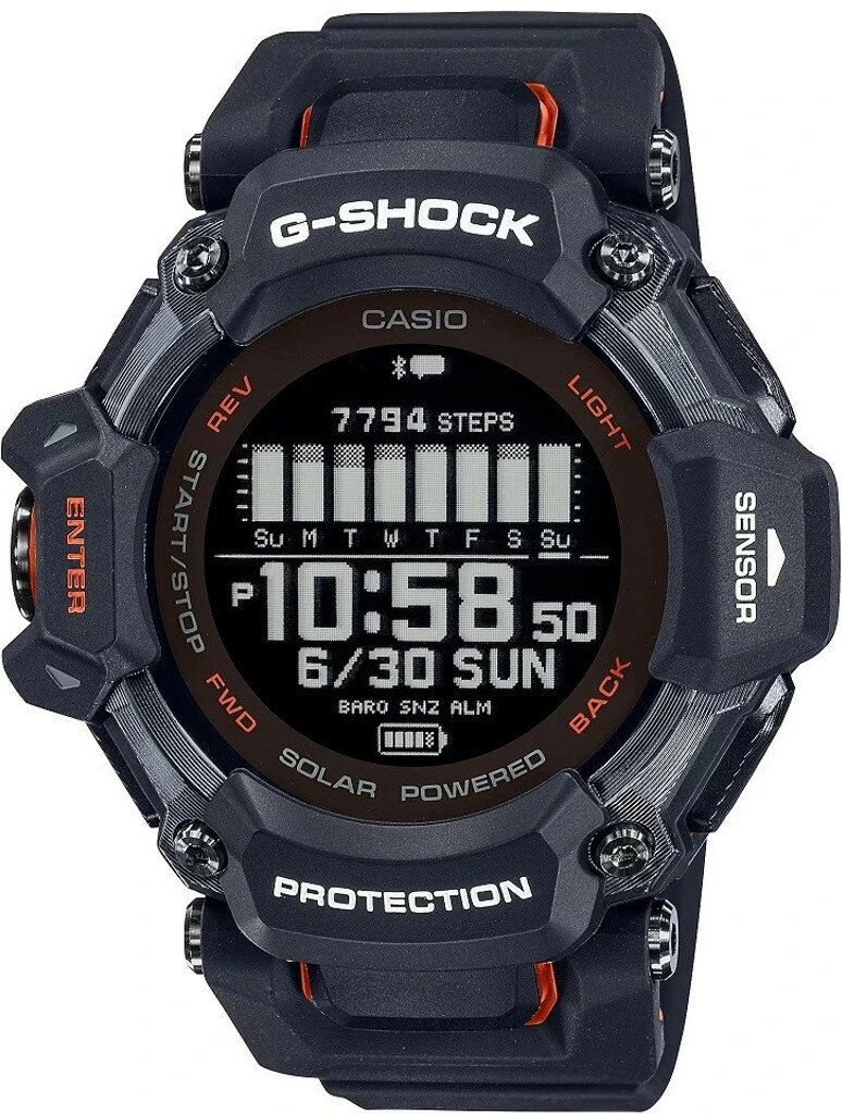 Релис 2023года Casio G-Shock с шестью датчиками из серии GBD-H2000. Помимо стильного внешнего вида, на борту модели в черном корпусе с яркими оранжевыми деталями присутствует: термометр, барометр, высотомер, компас, пульсометр, шагомер и гироскоп!