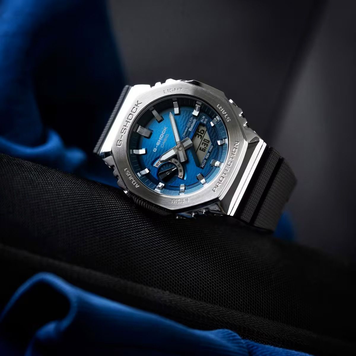 Релиз второй половины 2025 года — новая серия G-Shock GBM-2100 в стальном корпусе в форме октагона с текстурным аналого-цифровым циферблатом голубого цвета ! Напомним, что металлические октагоны джишок берут свое начало с полимерной серии GA-2100 в восьмиугольном корпусе.