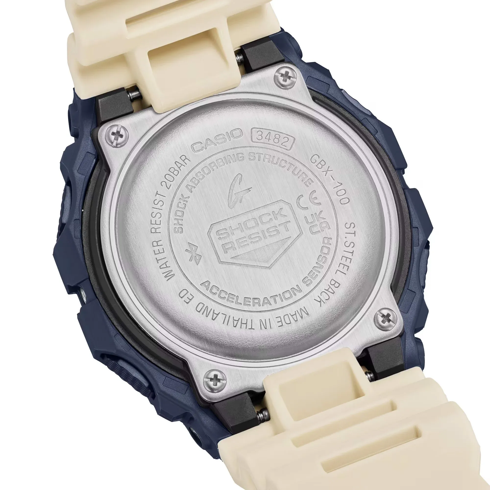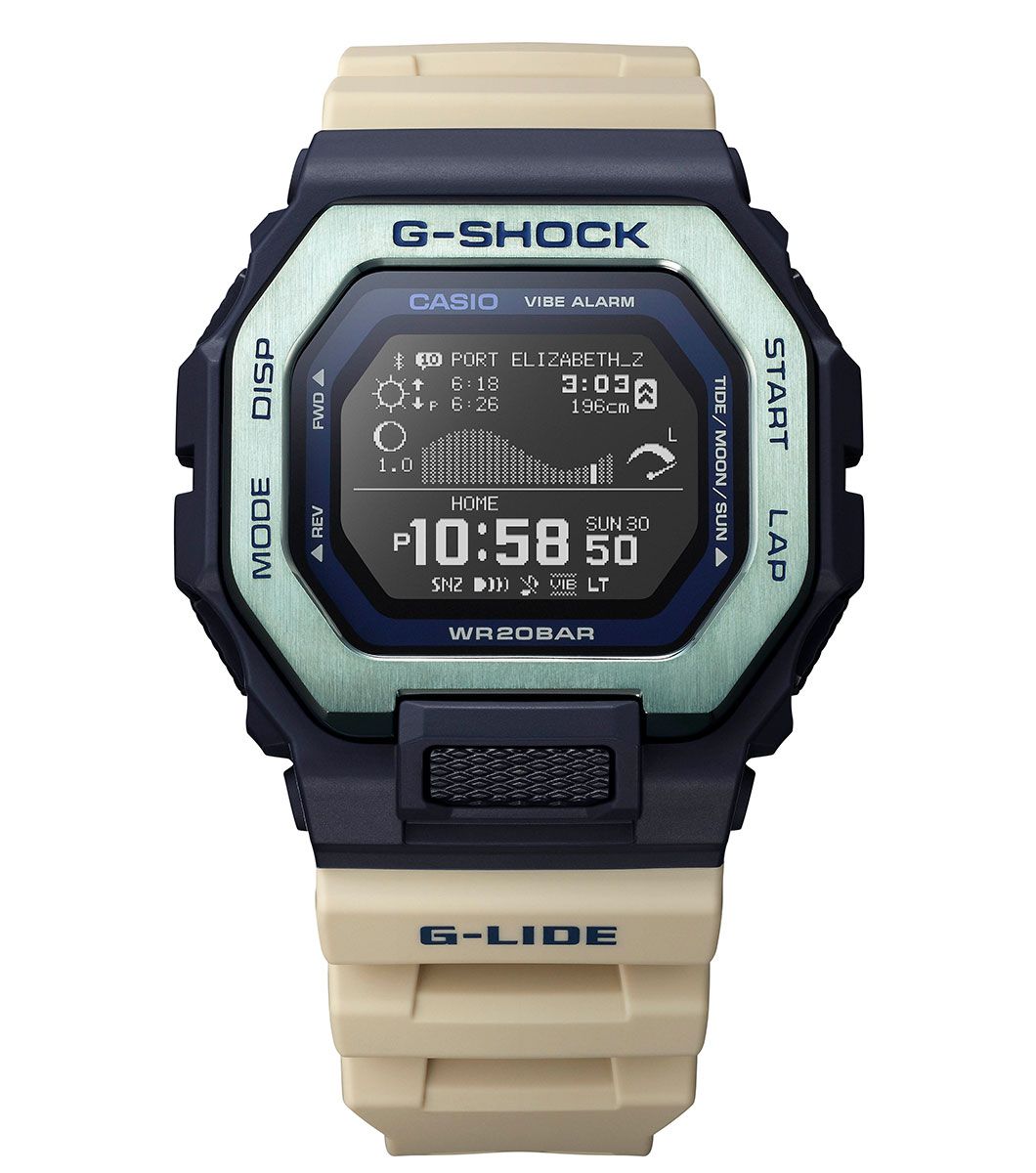 Релиз 2023 года в корпусе GBX-100 из серферско-бордерской серии G-SHOCK G-LIDE. Модель выполнена в полимерном корпусе и получила новый информативный MIP инверсионный дисплей, который защищен стальным безелем и прочным минеральным стеклом.