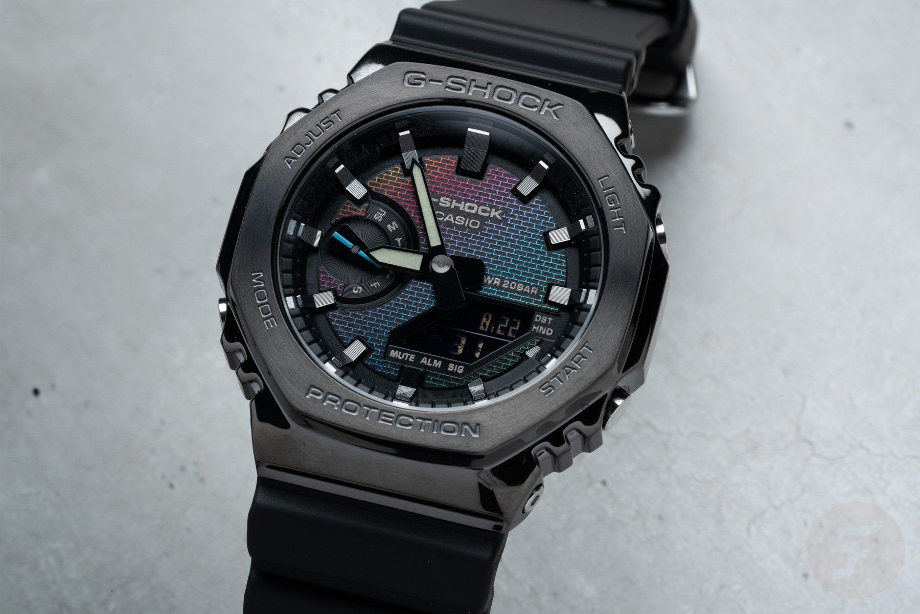 Редкая лимитированная модель 2025 года из серии G-Shock GM-2100 в стальном корпусе "графитового" цвета в форме октагона с ярким необычным циферблатом!