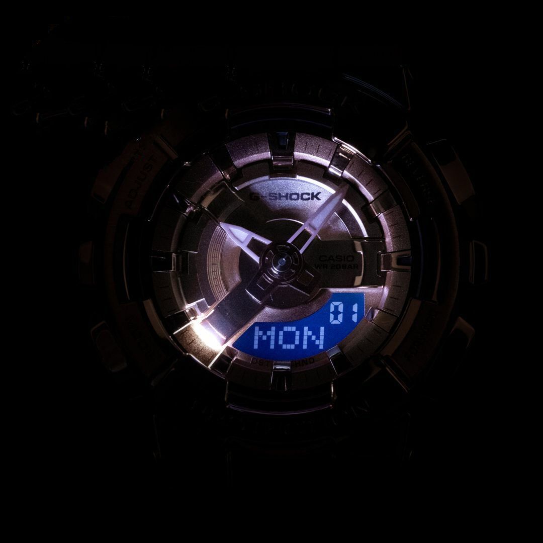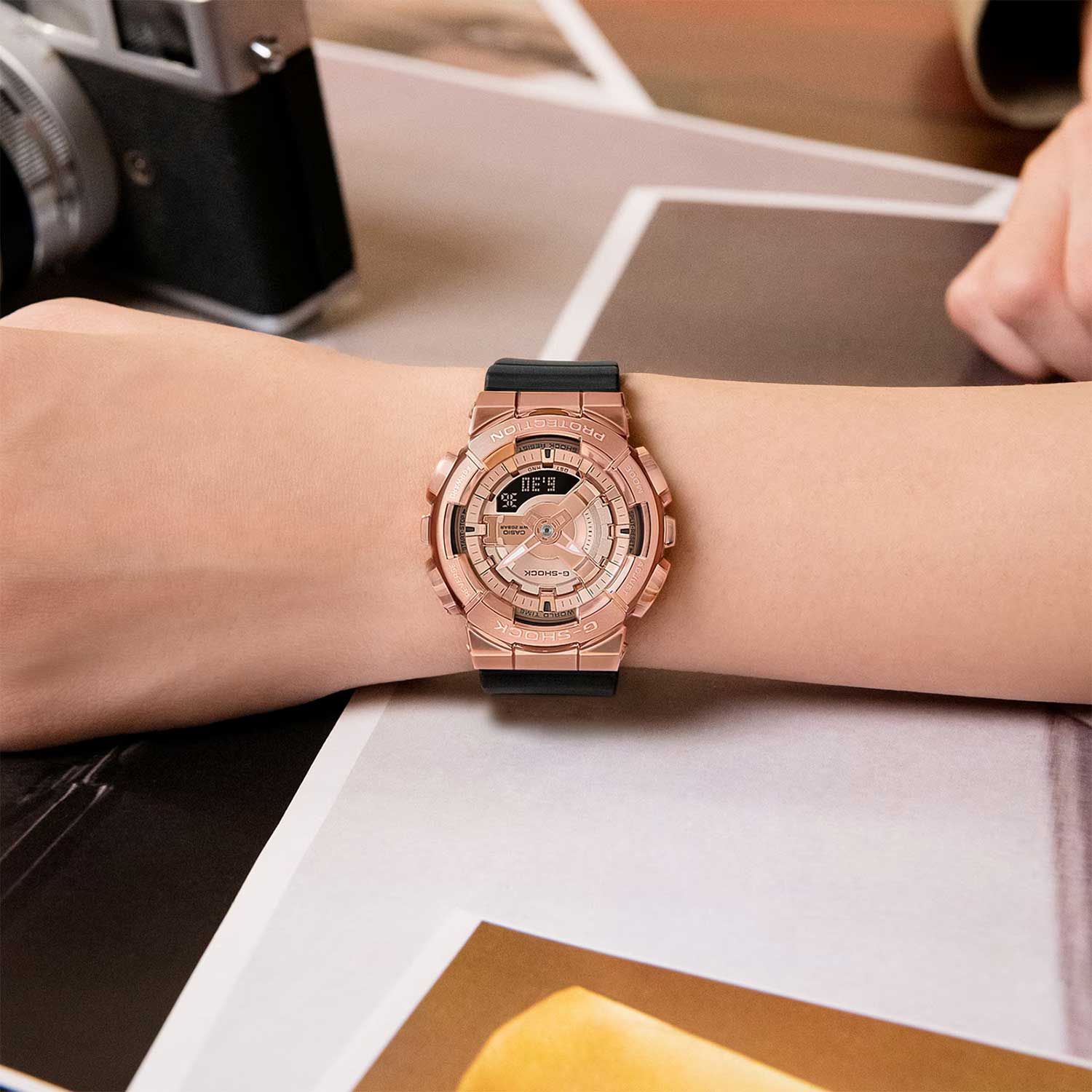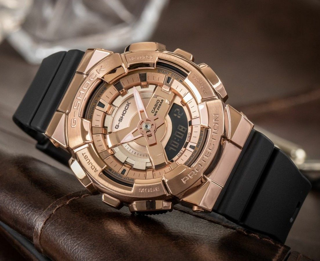 Стильный релиз второй половины 2022 года, новая серия компактных G-Shock GM-S110 в стальном корпусе цвета розового золота с инверсионным дисплеем! Эта унисекс-серия джишоков является уменьшенным вариантом моделей GM-110 и подходит даже для утонченных женских запястий.