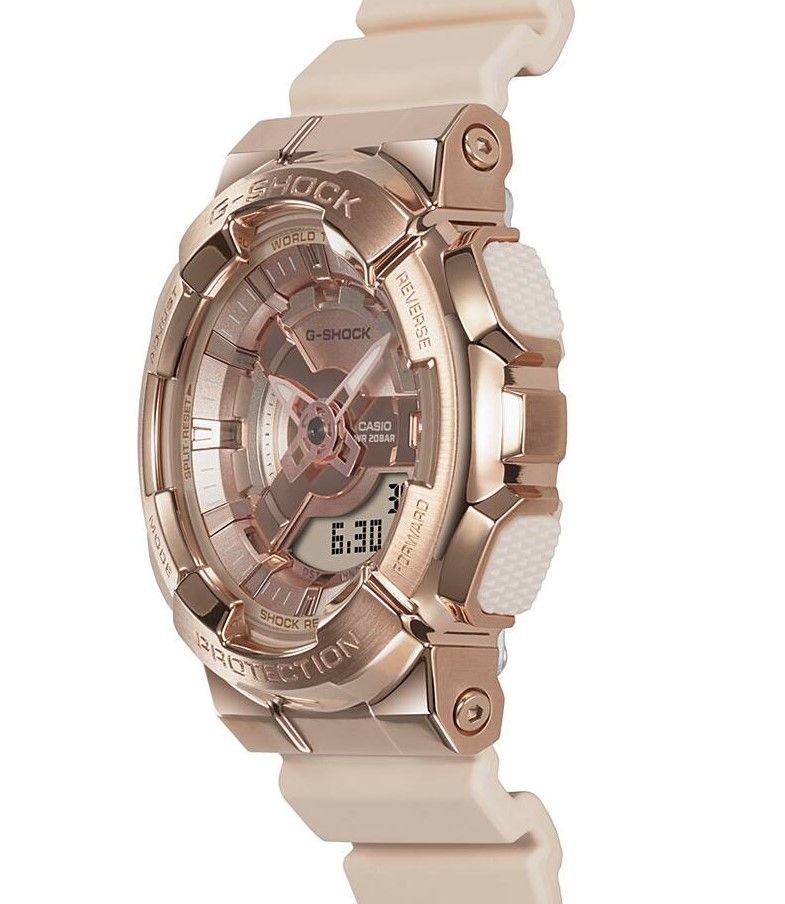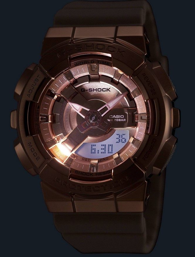 Стильный релиз второй половины 2023 года, новая серия компактных G-Shock GM-S110 в стальном корпусе цвета розового золота с позитивным дисплеем!