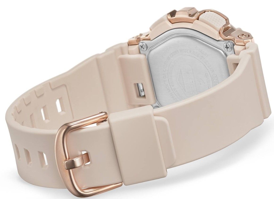 Несмотря на появление металла, эта модель в стальном корпусе на нежно-розовом полимерном ремешке может похвастать своей легкостью в 55 грамм, компактностью и толщиной корпуса всего в 13 мм, что впечатляет на фоне более массивных собратьев по серии G-Shock.