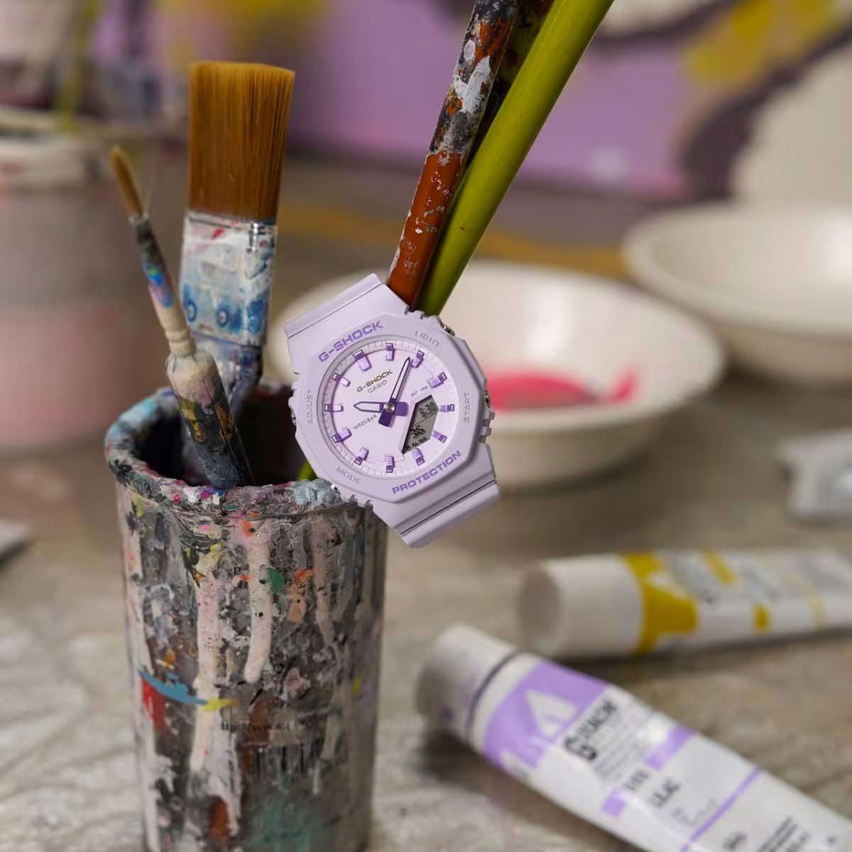 Стильная унисекс модель 2024 года из свежей серии G-SHOCK GMA-P2100 в сиреневом октагоновом корпусе на полимерном ремешке. Модель является уменьшенным вариантом часов из мужской серии джишоков GA-2100, что позволяет ей оптимально выглядеть даже на самых небольших и изящных женских запястьях. Толщина модели всего 11.2 миллиметра, что на момент ее выхода является абсолютным рекордом среди всех джишоков!