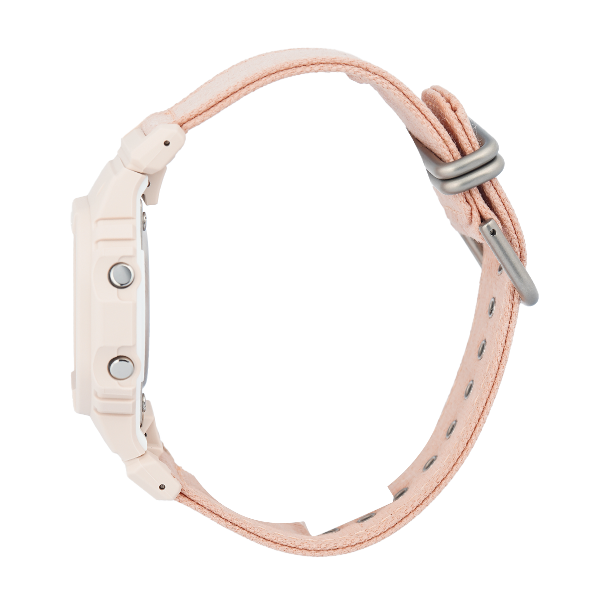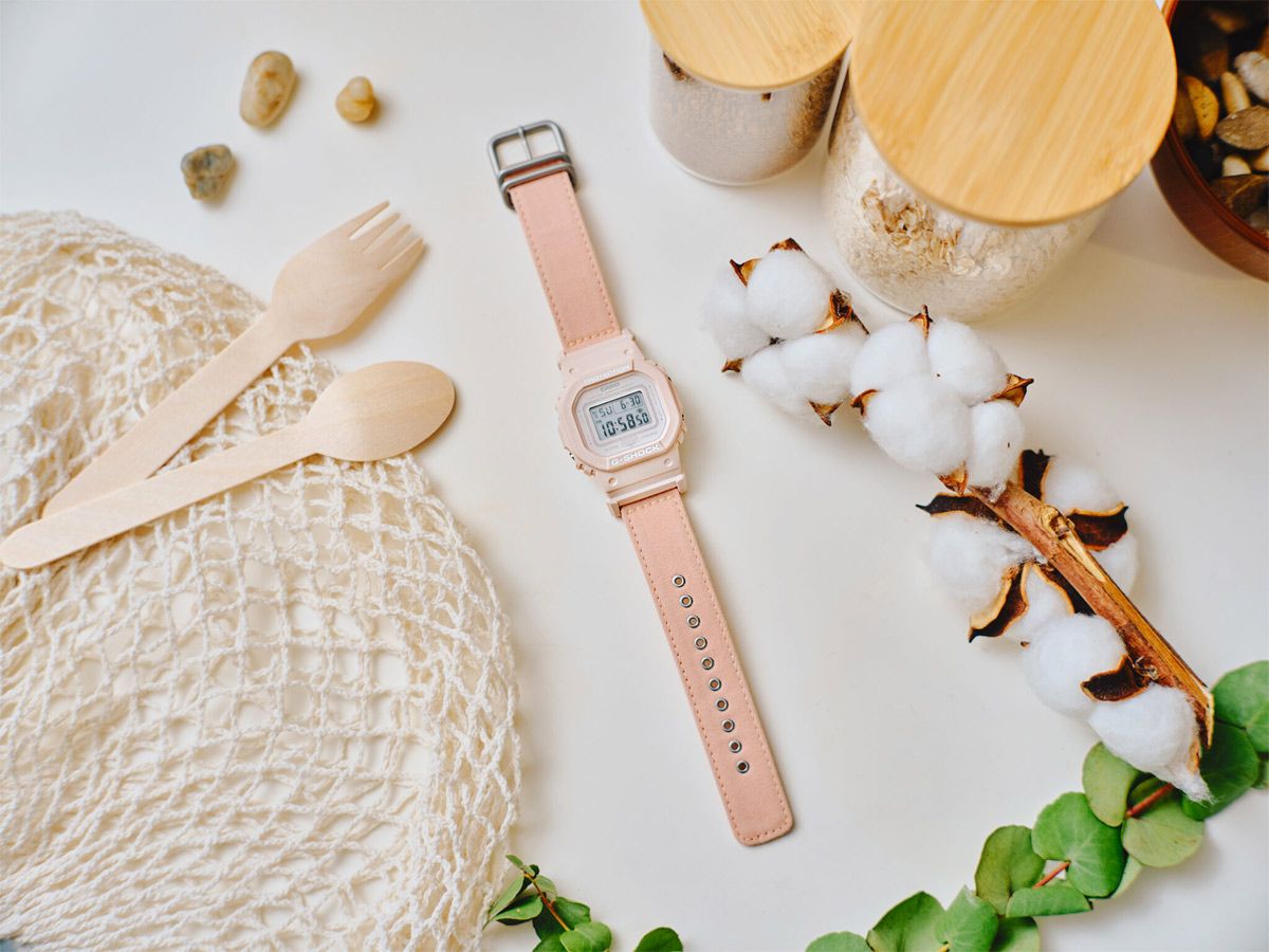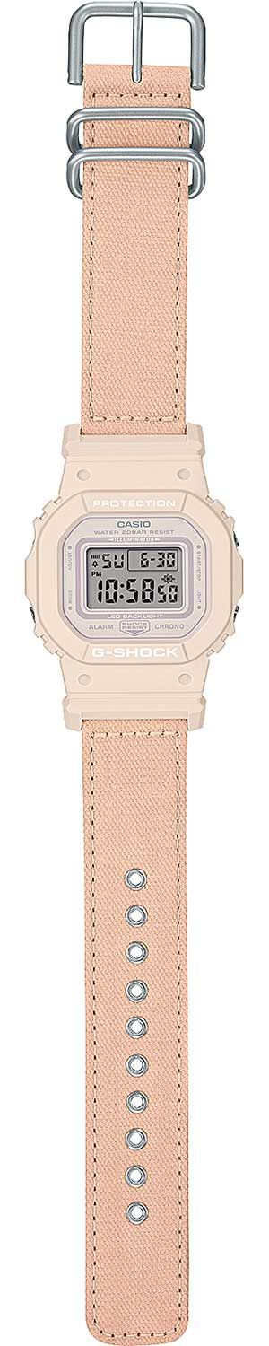 Перед вами редкая модель 2024 года из серии GMD-S5600. Эта цифровая унисекс модель в уменьшенном корпусе матового светло-пудрового оттенка обладает отличной эргономикой и превосходным стильным внешним видом, а тканевый ремешок добавляет часам харизмы и удобства при носке.