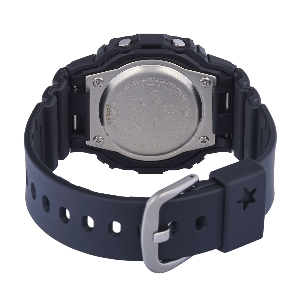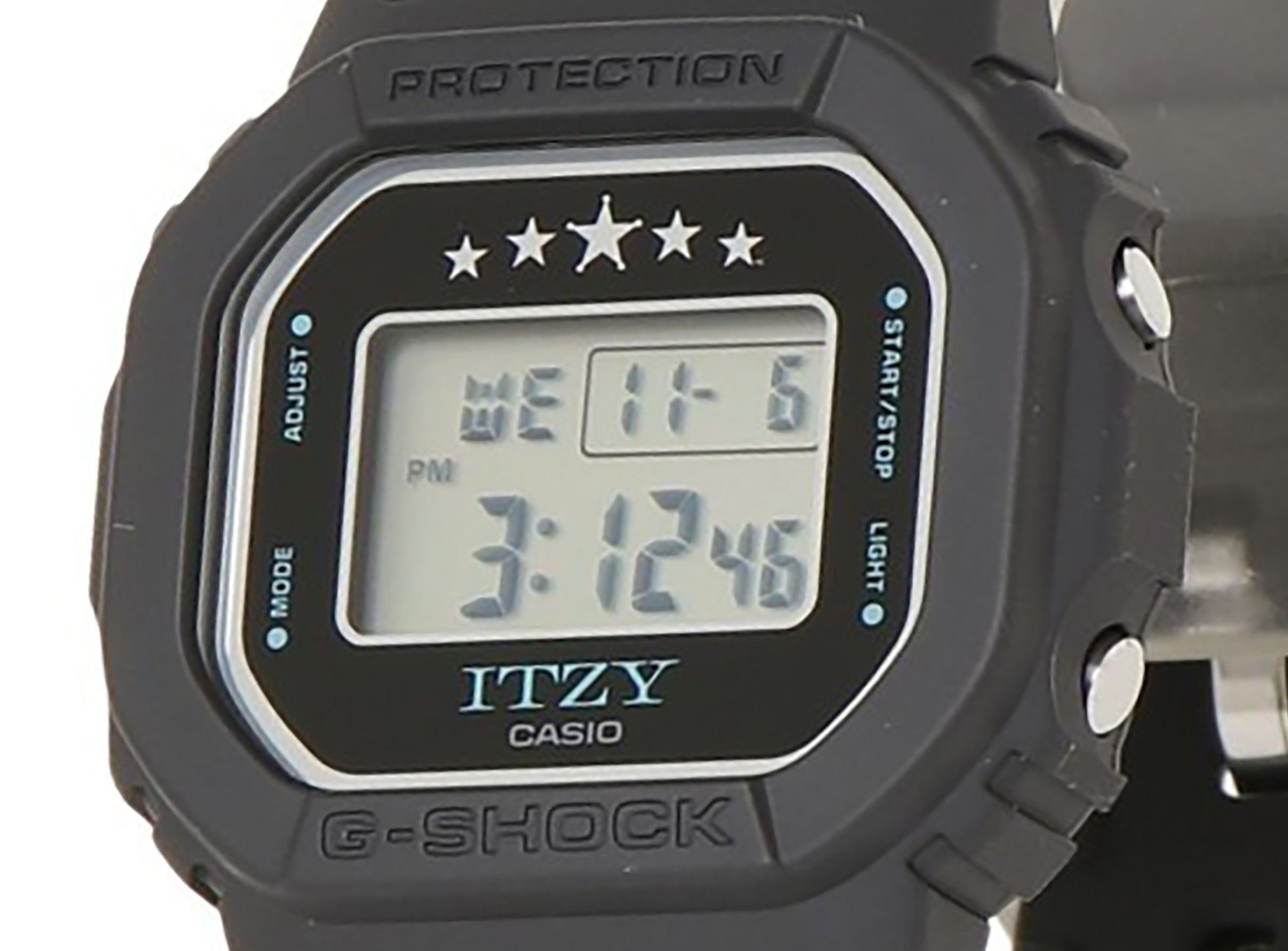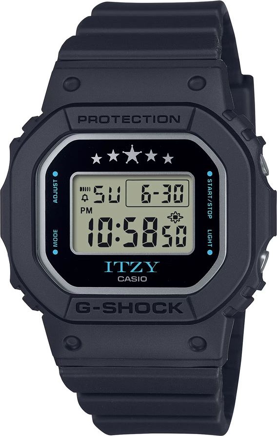 Перед вами редкая лимитированная новинка 2024 года из серии GMD-S5600. Эта цифровая унисекс модель в уменьшенном корпусе черного цвета является коллаборацией бренда G-Shock и Itzy — популярной южнокорейской гёрл-группы жанра K-pop. Логотип группы Itzy украшает нижнюю часть циферблата часов, а на верхней вы найдете 5 звезд — по количеству участниц группы.