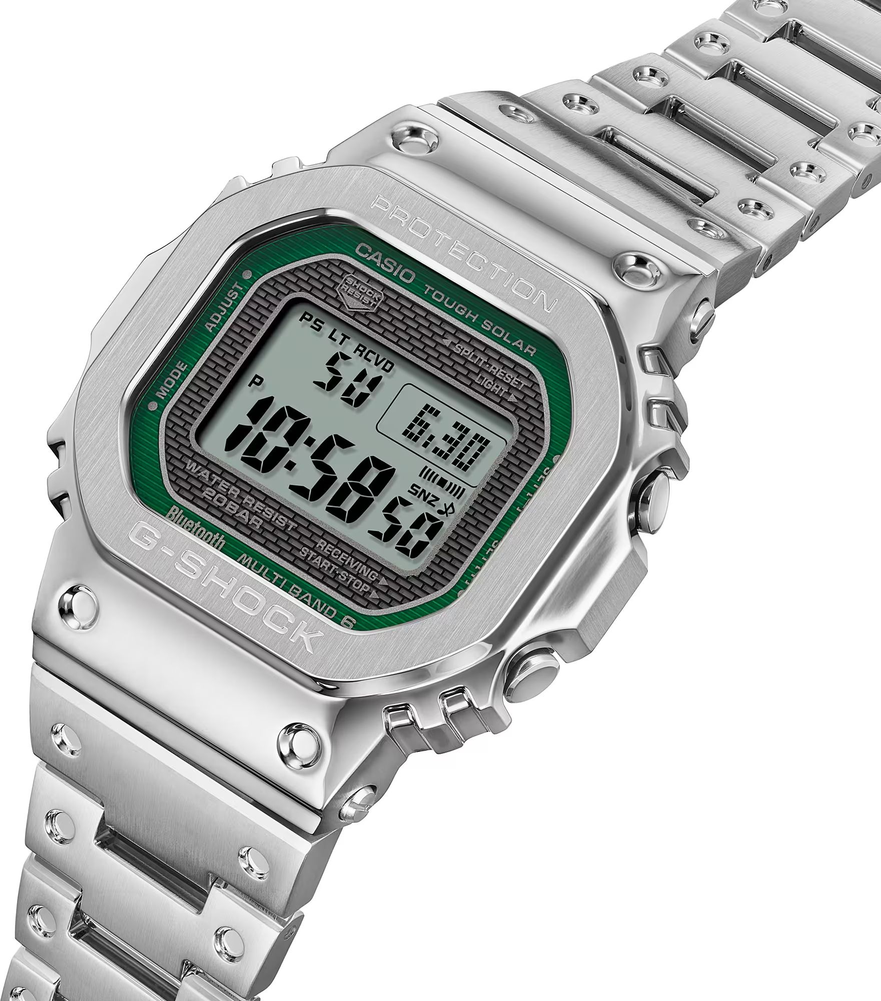 Начинка часов не отстает от внешнего вида: синхронизация времени со смартфоном и легкая настройка часов через Bluetooth, радио-синхронизация с атомными часами на разных континентах, улучшенная и еще более эффективная технология Tough Solar — питание часов от солнечного или искусственного света и еще более десятка функций.