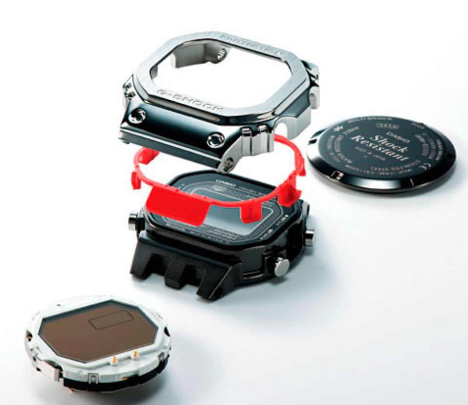 с механизмом часов. Благодаря такой структуре инженеры Casio достигли абсолютной ударопрочности, несмотря на использование в модели металла, вместо привычного полимера.