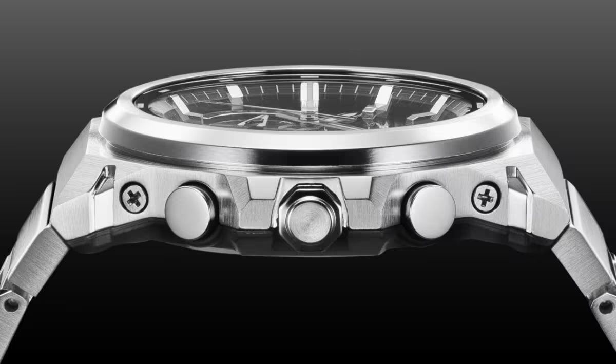 Большой релиз G-Shock 2025 года из серии G-STEEL в стальном корпусе с черным текстурным циферблатом под закаленным минеральным стеклом. Новый корпус GST-B1000 из стали и карбона отличается лаконичностью ввиду отсутствия фирменных надписей, которые вы найдете на других моделях G-STEEL и имеет толщину всего 11.6 мм и 44 мм в диаметре.