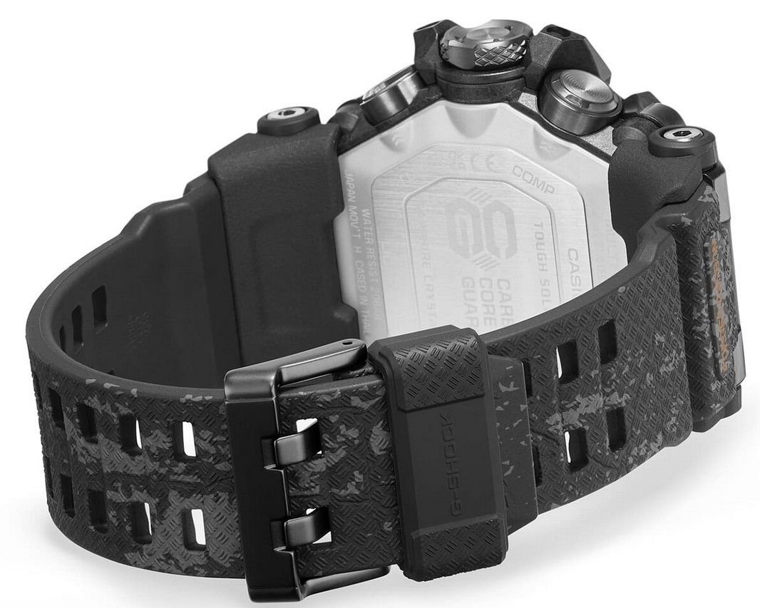 Данная модель в черном полимерно-карбоновом корпусе с металлическими деталями цвета розового золота и принтом потрескавшейся земли и камней на корпусе, циферблате и даже ремешке, являет собой эволюционное развитие предыдущей версии флагманских джишоков GWG-1000 и получила еще более жесткий и агрессивный дизайн, карбоновый ультра прочный корпус, стальной безель и еще большую степень защиты от пыли и грязи. Модель по-прежнему является одной из самых массивных среди всех джишоков, хоть и стала на пару миллиметров тоньше своих предшественников.