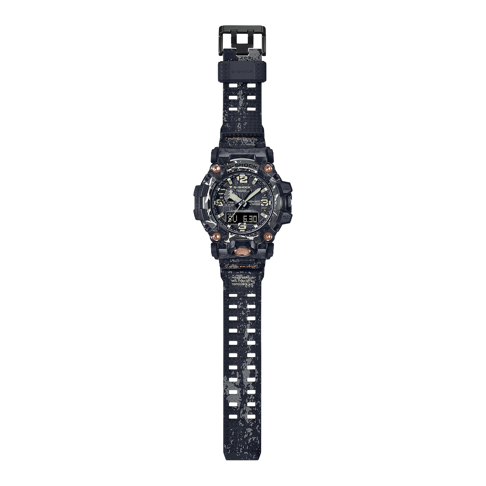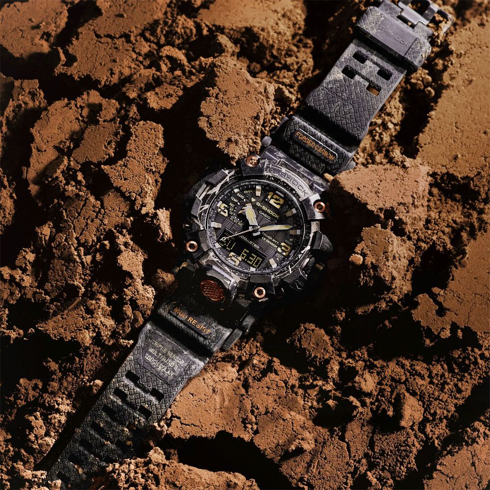 Напомним, что благодаря технологиям абсолютной пыле- и грязеустройчивости, а также защите от самых мощных вибраций, модели серии MUDMASTER можно эффективно использовать в самых агрессивных условиях. Интересно, что получаемая при производстве часов карбоновая текстура корпуса является уникальной для каждой модели и вы не встретите две одинаковых модели с одинаковой текстурой.