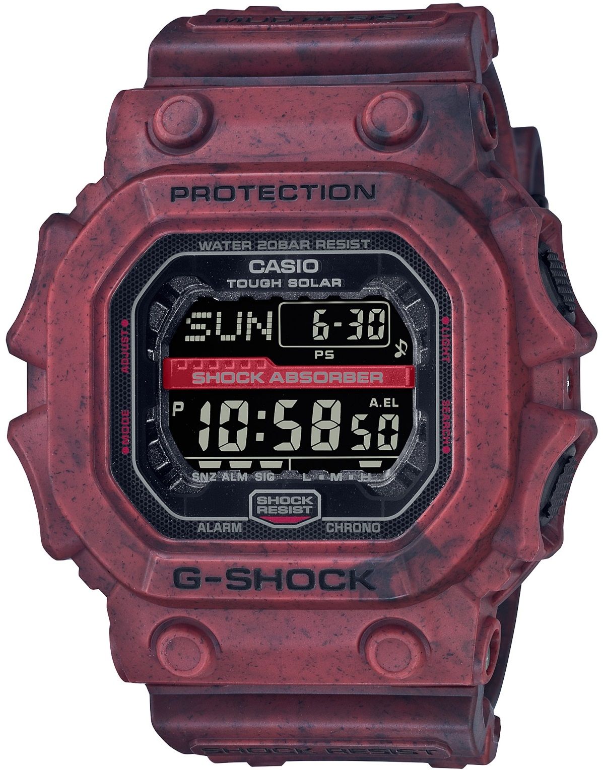 Перед вами Король Джишоков (G-Shock King) — именно такое неофициальное название модель получила среди поклонников бренда. Модель является редкой лимиткой в красном гранжевом абстрактном камуфляже. Благодаря уникальной технологии, каждая модель данной расцветки имеет свой уникальный, не повторяющийся абстрактный принт на корпусе и ремешке.