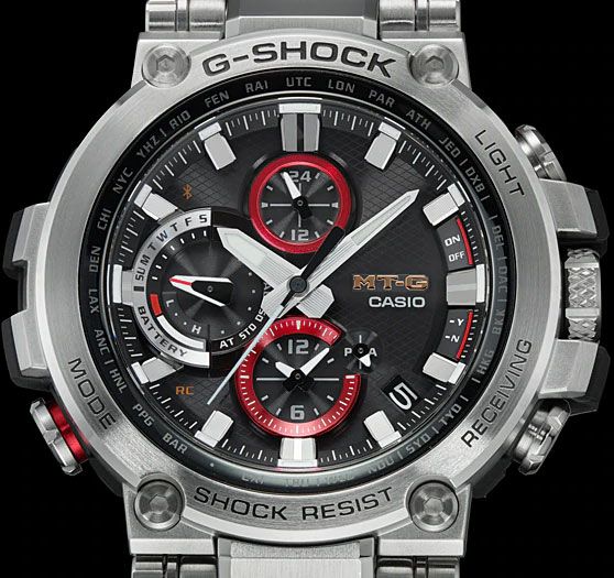 Большой релиз Базеля 2018 года от Casio — новое поколение премиальной стальной серии G-Shock MTG. Модель обладает новым супер-стильным дизайном, переосмысленной структурой корпуса, из-за чего получилось сделать его более компактным и тонким, нежели предыдущие модели MTG. Полимерная часть корпуса теперь дополнительно усилена карбоновыми волокнами. Внутренняя часть стального браслета имеет отделку из красного полимера, что добавляет более комфортное ощущение часов на руке.