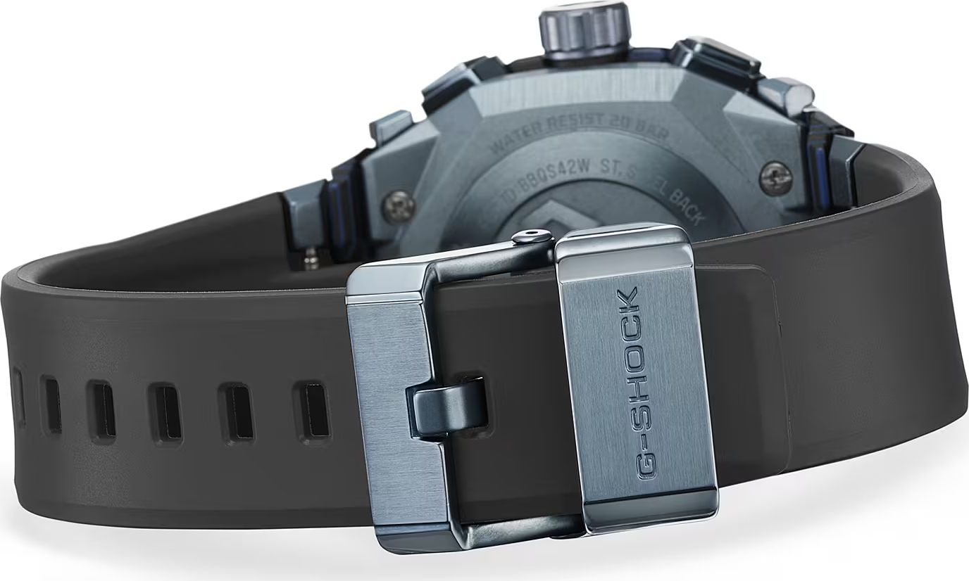Обновленный модуль часов надежно защищен карбоновым монококом по зарекомендовавшей себя технологии TRIPLE G RESIST от перегрузок, центробежной силы и различных, даже самых мощных вибраций. На борту присутствует и классическая для джишоков водозащита в 200 метров. Питаются часы от любого источника света благодаря встроенной солнечной батарее.