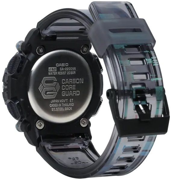 Яркий лимитированный релиз середины 2022 года в темном полупрозрачном корпусе GA-2200 со стильным "глитчевым" принтом.