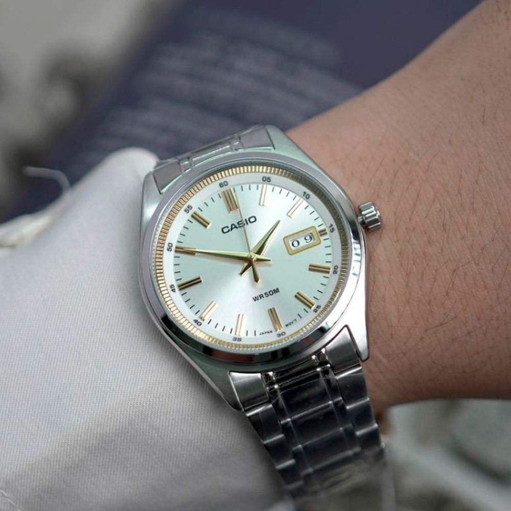 Стильный и лаконичный мужской трехстрелочник из серии CASIO CLASSIC в небольшом стальном корпусе в винтажном стиле с контрастным светлым циферблатом и деталями цвета золота, покрытым прочным минеральным стеклом станет отличным выбором в качестве модели на каждый день или аксессуаром, который будет приковывать к себе взгляды окружающих, гармонично дополняя собой любой ваш образ.
