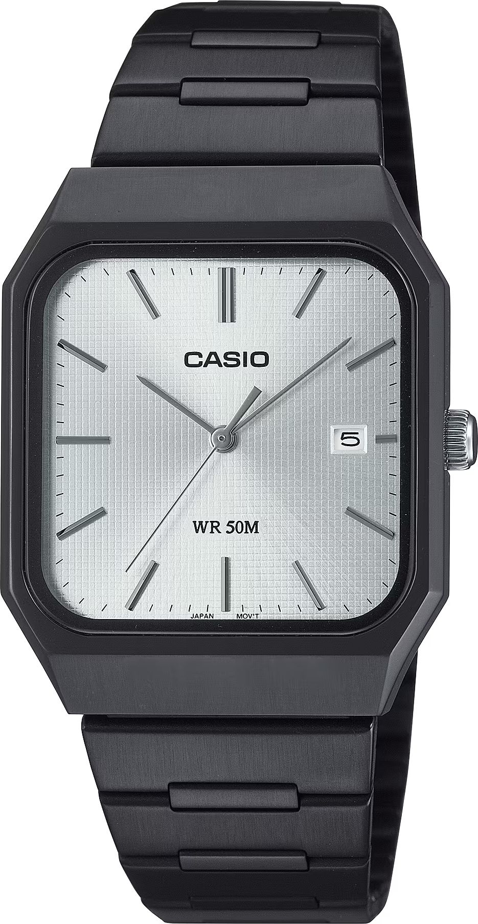 Стильный лаконичный трехстрелочник из серии CASIO CLASSIC в стальном прямоугольном корпусе с IP покрытием и фактурным серебристым циферблатом, покрытым прочным минеральным стеклом станет отличным выбором в качестве модели на каждый день или аксессуаром, который будет приковывать к себе взгляды окружающих, гармонично дополняя собой любой ваш образ.