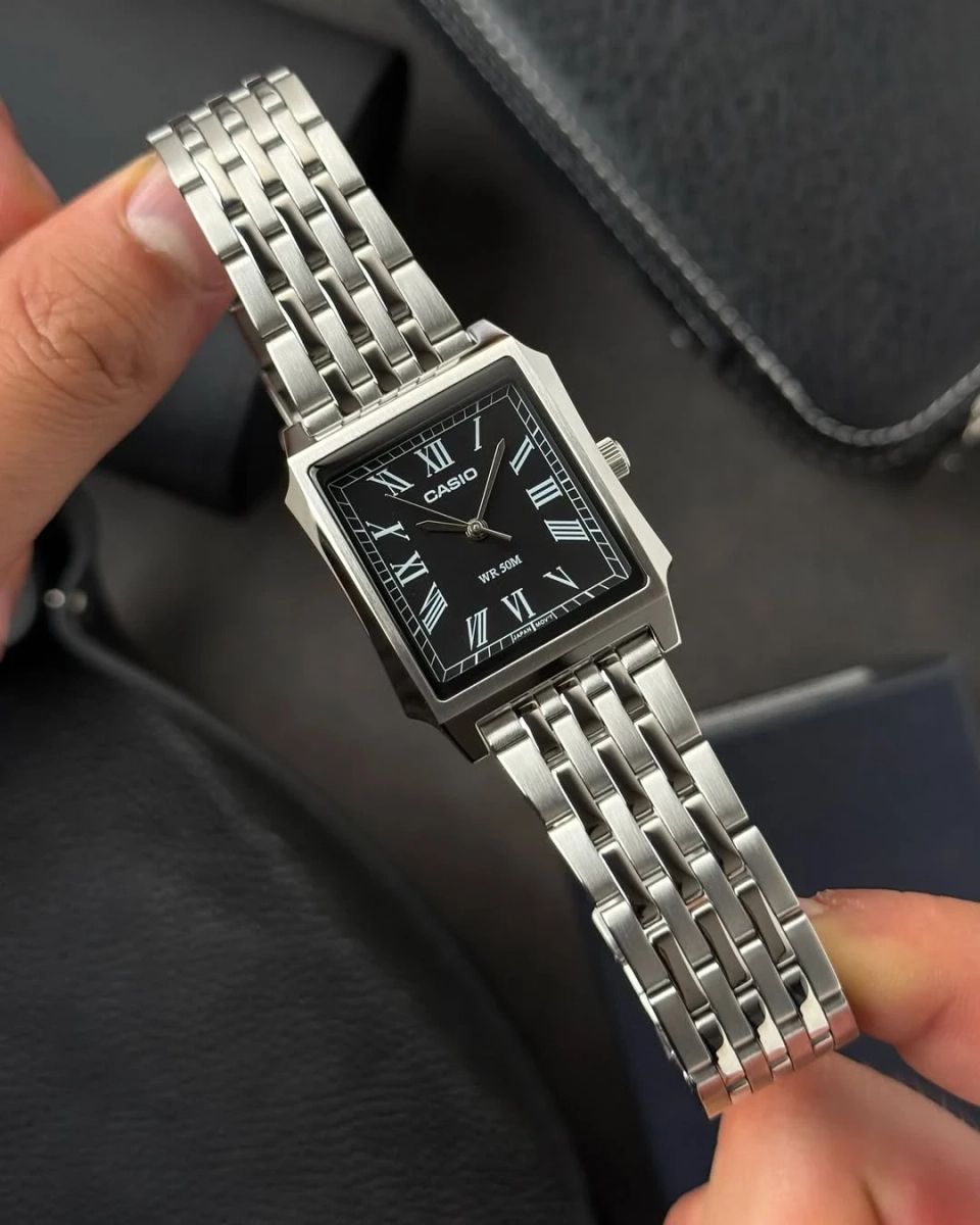 Стильный лаконичный трехстрелочник из серии CASIO CLASSIC в стальном прямоугольном корпусе с римскими цифрами на циферблате, покрытым прочным минеральным стеклом станет отличным выбором в качестве модели на каждый день или аксессуаром, который будет приковывать к себе взгляды окружающих, гармонично дополняя собой любой ваш образ.