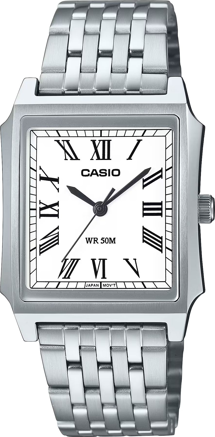 Стильный лаконичный трехстрелочник из серии CASIO CLASSIC в стальном прямоугольном корпусе с римскими цифрами на циферблате, покрытым прочным минеральным стеклом станет отличным выбором в качестве модели на каждый день или аксессуаром, который будет приковывать к себе взгляды окружающих, гармонично дополняя собой любой ваш образ.